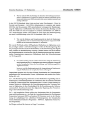 Deutscher Bundestag – 19. Wahlperiode –3– Drucksache 19/8031 nale Fokus liegt weiter auf den sechs „Nord-Provinzen“ Balkh, Kunduz, Takhar, Badakhshan, Baghlan und Samangan sowie Kabul. Eine Erweiterung auf andere sichere Standorte wird kontinuierlich geprüft. Militärisch beteiligt sich die Bundeswehr im Rahmen der NATO-Mission Reso lute Support an der Ausbildung, Beratung und Unterstützung der afghanischen Verteidigungs- und Sicherheitskräfte, damit diese ihre Sicherheitsverantwortung nachhaltig wahrnehmen können. Die humanitäre Hilfe unterstützt besonders bedürftige Bevölkerungsgruppen nach Maßgabe des Bedarfs und auf Grundlage der humanitären Prinzipien. Die Bundesregierung hat sich zur Unterstützung Afghanistans verpflichtet: Af ghanistan ist weiterhin von internationaler Unterstützung abhängig, ohne die die Stabilität des Landes und die Entwicklungserfolge der letzten Jahre in Gefahr wä ren. Auf der Brüsseler Afghanistan-Konferenz im Oktober 2016 hat die interna tionale Gemeinschaft ihre fortdauernde zivile Unterstützung für Stabilisierung, Wiederaufbau und Entwicklung Afghanistans bekräftigt. Auch die Bundesregie rung hat sich zu einem langfristigen zivilen Engagement in Afghanistan bekannt und für den Zeitraum bis 2020 einen Beitrag von bis zu 1,7 Mrd. Euro in Aussicht gestellt. Pro Jahr sind demnach bis zu 250 Mio. Euro für Entwicklungszusam menarbeit und 180 Mio. Euro für zivile Stabilisierungsvorhaben des „Stabilitäts paktes Afghanistan“ vorgesehen. Zuletzt wurde im Rahmen der Genfer Ministerkonferenz zu Afghanistan am 27. und 28. November 2018 die politische Lage sowie der Stand der afghanischen Reformfortschritte auf internationaler Ebene diskutiert. Die Teilnehmer der inter nationalen Konferenz sicherten der afghanischen Regierung in einer kritischen Phase des Friedensprozesses sowie seiner demokratischen Entwicklung (Parla ments-/Präsidentschaftswahlen) weitere Unterstützung zu. Schwerpunkte der Konferenz waren: 1. Frieden, 2. Reformen und Entwicklung, sowie 3. Regionale Kooperation/Konnektivität. Im Rahmen der von den Vereinten Nationen und der afghanischen Regierung gemeinsam ausgerichteten Ministerkonferenz wurden zudem konkrete Zielvereinbarungen für die Zusammenarbeit verabschiedet. Das sogenannte Geneva Mutual Accountability Framework (GMAF) bildet die Grundlage für gemeinsame Anstrengungen der afghanischen Regierung und der Staatengemeinschaft in zentralen Entwicklungsbereichen wie Armutsbekämp fung, Korruptionsbekämpfung, gute Regierungsführung, Förderung von Frauen und wirtschaftliche Entwicklung. Gleichzeitig fordert der GMAF eine stärkere Orientierung der Gebergemeinschaft an afghanischen Prioritäten. 1. Welche Bundesressorts finanzieren Vorhaben und Projekte in Afghanistan (bitte nach Ressort, Vorhaben bzw. Projekten und Förderbetrag, Durchfüh rungsorganisationen, Einzelplan, Kapitel und Titel für die Jahre 2017 und 2018 auflisten)? Es wird auf Anlage 1 verwiesen.