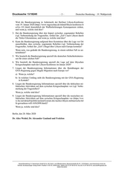 Drucksache 19/18245 –2– Deutscher Bundestag – 19. Wahlperiode Wird die Bundesregierung in Anbetracht der Berliner Libyen-Konferenz vom 19. Januar 2020 (https://www.tagesschau.de/inland/libyen-konferenz-b erlin-101.html) hinsichtlich der Waffenlieferungen Konsequenzen ziehen, und wenn ja, welche sind dies? 3. Hat die Bundesregierung über den Import syrischer, sogenannter Rebellen (vgl. Vorbemerkung der Fragesteller, Artikel der „Zeit“) nach Libyen durch die Türkei Erkenntnisse, und wenn ja, welche sind dies? 4. Kann die Bundesregierung aufgrund ihrer Kenntnisse über die Lage vor Ort ausschließen, dass syrische, sogenannte Rebellen (vgl. Vorbemerkung der Fragesteller, Artikel der „Zeit“) illegal über Libyen nach Europa kommen? Wenn nein, was gedenkt die Bundesregierung, in einem solchen Fall zu un- ternehmen? 5. Wie beurteilt die Bundesregierung speziell die deutschen Sicherheitsinteres- sen für einen solchen Fall? 6. Wie beurteilt die Bundesregierung speziell die Lage auf dem libyschen Kriegsschauplatz nach der Libyen-Konferenz im Januar 2020? 7. Liegen der Bundesregierung Informationen über die Bemühungen der GNA-Regierung gegen illegale Migration nach Europa vor? a) Wenn ja, welche? b) In welchen Umfang steht die Bundesregierung mit der GNA-Regierung in Kontakt? 8. Liegen der Bundesregierung Informationen speziell über die türkischen mi- litärischen Aktivitäten auf dem syrischen Kriegsschauplatz vor (vgl. Vorbe- merkung der Fragesteller)? Wenn ja, welche sind dies? 9. Liegen der Bundesregierung Informationen speziell über die russischen mi- litärischen Aktivitäten auf dem syrischen Kriegsschauplatz vor (https://ww w.faz.net/aktuell/politik/ausland/warum-die-tuerkei-libyen-militaerische-hil fe-gewaehren-will-16562890.html)? Wenn ja, welche sind dies? Berlin, den 20. März 2020 Dr. Alice Weidel, Dr. Alexander Gauland und Fraktion Gesamtherstellung: H. Heenemann GmbH & Co. KG, Buch- und Offsetdruckerei, Bessemerstraße 83–91, 12103 Berlin, www.heenemann-druck.de Vertrieb: Bundesanzeiger Verlag GmbH, Postfach 10 05 34, 50445 Köln, Telefon (02 21) 97 66 83 40, Fax (02 21) 97 66 83 44, www.betrifft-gesetze.de ISSN 0722-8333