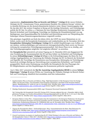 Wissenschaftliche Dienste Dokumentation Seite 6 WD 2 - 3000 - 022/17 sogenannten „Implementation Plan on Security and Defence“ (Anlage 2) der neuen Globalen 6 Strategie der EU „Gemeinsame Vision, gemeinsames Handeln: Ein stärkeres Europa“ erörtert, der in dieselbe Richtung wie die deutsch-französische Initiative weist. Dieser Umsetzungsplan legt für das Jahr 2017 das weitere Vorgehen in Bezug auf die künftige Sicherheits- und Verteidigungs- politik der EU fest. So sollen u. a. Optionen für eine Ständige Strukturierte Zusammenarbeit im 7 Bereich Sicherheit und Verteidigung, Vorschläge zur Stärkung der Einsatzbereitschaft von sog. Battlegroups, zum Kapazitätsaufbau für Sicherheit und Entwicklung sowie zur Überprüfung des bisherigen Athena-Finanzierungsmechanismus vorgestellt werden. Den günstigen Augenblick am Ende des Jahres 2016, der GSVP ein neues Momentum zu ver- leihen, nutzte auch die Europäische Kommission und verabschiedete am 30. November 2016 den Europäischen Aktionsplan Verteidigung (Anlage 3). Er enthält Empfehlungen zum Aufbau ei- 8 ner starken, wettbewerbsfähigen und innovativen rüstungsindustriellen Basis sowie zur Neuaus- richtung der europäischen Verteidigungszusammenarbeit. Ziel dieses Plans ist es, künftig „mit den Verteidigungsausgaben möglichst viel möglichst effizient“ zu erreichen. Der Europäische Rat unterstrich auf seiner Tagung am 15. Dezember 2016 sein Engagement für eine Verstärkung der Zusammenarbeit der EU auf dem Gebiet von Sicherheit und Verteidigung. In seinen Schlussfolgerungen (Anlage 4) billigte er die Schlussfolgerungen des Rates für Aus- 9 wärtige Angelegenheiten zur Umsetzung der Globalen Strategie der EU im Bereich der Sicherheit und begrüßte die Vorschläge der Kommission zum Europäischen Aktionsplan im Verteidigungs- bereich als wichtigen Beitrag zur Entwicklung einer europäischen Sicherheits- und Verteidi- gungspolitik. Durch seine Zustimmung verschaffte der Europäische Rat den Planungen der EU-Mitgliedstaaten und den Empfehlungen der Kommission politische Legitimität. Am 6. März 2017 unterstrich der Rat für Auswärtige Angelegenheiten (RfAB) in seinen Schluss- folgerungen (Anlage 5) seinen Willen zur Umsetzung der Globalen Strategie im Bereich Sicher- 10 heit und Verteidigung. Inhaltlich hervorzuheben sind hier insbesondere 6 Implementation Plan on Security and Defence. Hrsg.: High Representative of the European Union for Foreign Affairs and Security Policy, Vice-President of the European Commission, and Head of the European Defence Agency. Ratsdokument Nr. 14392/16 vom 14. November 2016. Abrufbar unter: https://eeas.europa.eu/sites/eeas/ files/eugs_implementation_plan_st14392.en16_0.pdf (letzter Zugriff: 6. März 2017). 7 Ständige Strukturierte Zusammenarbeit (SSZ), engl.: Permanent Structured Cooperation (PESCO:). Vgl. Vertrag über die Europäische Union (EU-Vertrag, EUV). Fassung aufgrund des am 1. Dezember 2009 in Kraft getretenen Vertrages von Lissabon (Konsolidierte Fassung bekanntgemacht im ABl. EG Nr. C 115 vom 9. Mai 2008, S. 13), Artikel 42. Abrufbar unter: https://dejure.org/gesetze/EU (letzter Zugriff: 6. März 2017). 8 European Defence Action Plan – Communication from the Commission to the European Parliament, the European Council, the European Economic and Social Committee and the Committee of the Regions. Hrsg.: Europäische Kommission. Kommissions-Dokument Nr. COM(2016) 950 vom 30. November 2016. Abrufbar unter: https:// eeas.europa.eu/sites/eeas/files/com_2016_950_f1_communication_from_commission_to_inst_en_v5_p1_869631.pdf (letzter Zugriff: 27. Februar 2017). 9 Tagung des Europäischen Rates – Schlussfolgerungen. Hrsg.: Generalsekretariat des Rates. Rats-Dokument Nr. EUCO 34/16. Abrufbar unter: http://www.consilium.europa.eu/de/meetings/european-council/2016/12/ 20161215-euco-conclusions-final_pdf/ (letzter Zugriff: 6. März 2017). 10 Council conclusions on progress in implementing the EU Global Strategy in the area of Security and Defence, Rat der Europäischen Union, 6. März 2017. Abrufbar unter: http://www.consilium.europa.eu/de/press/press-relea- ses/2017/03/06-conclusions-security-defence/ (letzter Zugriff: 7. März 2017).