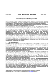 Nr. 21/2003 DER AKTUELLE BEGRIFF 17.07.2003 Haushaltssperre und Nachtragshaushalt Seit jeher bereitet in Zeiten knapper öffentlicher Mittel die Aufstellung eines öffentlichen Haushalts erhebliche Schwierigkeiten. Bei immer schwierigeren Konjunkturprognosen rückt jedoch auch der ordnungsgemäße Vollzug des Haushalts zunehmend ins Zentrum der politischen Diskussion. Es geht dabei um das Problem, einen einmal festgestellten und damit statischen Haushaltsplan an die dynamisch verlaufende Haushaltsentwicklung anzupassen. Der Vollzug des nach Entwurf durch die Bundesregierung mit dem Haushaltsgesetz durch den Bundestag beschlossenen Haushaltsplans ist Aufgabe der Verwaltung. Dabei sind entsprechend dem grundlegenden Ressortprinzip die Minister sowie die Leiter der obersten Bundesbehörden für die Bewirtschaftung „ihres“ Einzelplans zuständig und ermächtigt, die im Haushaltsplan vorgesehenen Ausgaben zu leisten. Es ergibt sich damit ein System einer dezentralen Haushaltsführung, wobei die mit dem Haushaltsvollzug betrauten Stellen in ihrer Mittelbewirtschaftung natürlich nicht völlig frei sind: Bindungen bestehen zum einen insoweit, als die bewilligten Beträge dem Grundsatz nach nur zu dem im Haushaltsplan bezeichneten Zweck und nur innerhalb des Rechnungsjahres verwendet werden dürfen. Zum anderen aber bleibt es wesentliche Aufgabe des Bundesfinanzministeriums (BMF), die Einhaltung des durch den Haushaltsplan vorgegebenen einzelplanübergreifenden Gesamtrahmens zu kontrollieren. Hierbei ist insbesondere das Gebot des Haushaltsausgleichs zu beachten, nach dem Einnahmen und Ausgaben stets ausgeglichen sein müssen. 1. Die Haushaltssperre Dem BMF steht mit der Anordnung einer Haushaltssperre ein Lenkungsmittel zur Verfügung, um Entwicklungen, die diese Vorgabe des Haushaltsausgleichs während der Vollzugsphase gefährden, entgegenzutreten. Solche Entwicklungen ergeben sich meist aus konjunkturellen Gründen, indem entweder die Einnahmen erheblich hinter den Ansätzen des Haushaltsplans zurückbleiben oder auf Ausgabenseite verpflichtend feststehende Mehrausgaben nicht durch Einsparungen an anderer Stelle des Haushaltsplans ausgeglichen werden können. Der Erlass jeder Haushaltssperre bewirkt eine Beschränkung der Verfügungsbefugnis der einzelnen Ressorts. Diese sind grundsätzlich nicht verpflichtet, sondern nur ermächtigt, die ausgewiesenen Ausgaben auch tatsächlich zu tätigen. Aus einer verhängten Sperre folgt eine Blockierung der Haushaltsansätze, so dass nur noch mit vorheriger Einwilligung des BMF Verpflichtungen eingegangen und Ausgaben geleistet werden dürfen. Hierdurch wird ein planender Eingriff in den Haushaltsvollzug durch das BMF möglich. Die Bundeshaushaltsordnung stellt dabei den Erlass einer sog. haushaltswirtschaftlichen Sperre in das Ermessen des BMF und statuiert selbst keine genaueren Voraussetzungen für deren Anordnung. Wegen der bestehenden erheblichen Schwierigkeiten einer Prognose der konjunkturellen Rahmenbedingungen und der voraussichtlichen Haushaltsentwicklung kommt dem BMF damit ein weiter Beurteilungsspielraum hinsichtlich des „Ob“ einer solchen Sperre zu. Auch hinsichtlich der inhaltlichen Ausgestaltung von Dauer und Umfang der Sperre ist das BMF frei. In Betracht kommt eine Sperrung einzelner Titel des Haushaltsplans bis hin zu einer globalen Sperre aller Einzelpläne; in zeitlicher Hinsicht steht dem BMF eine vorübergehende oder die gesamte restliche Dauer des Haushaltsjahres erfassende Sperre offen. "Der aktuelle Begriff" ist eine Kurzinformation der Wissenschaftlichen Dienste des Deutschen Bundestages. Nachbestellungen unter Tel. (030) 227 38670. Im Internet abrufbar unter: http://www.bundestag.de