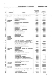 Deutscher Bundestag — 6. Wahlperiode Drucksache VI/1830 Empfohlener Betrag des Gezahlter Lfd. Vorhaben Wissenschafts Bundesbetrag Hochschule Nr. rates DM DM 6 Universität Zentrum für Interdisziplinäre Forschung 1 000 000 200 000 Bielefeld 7 Aufschließungsmaßnahmen 500 000 100 000 8 Grunderwerb (1. Januar 1970) 5 760 000 5 000 000 9 Universität Gebäude NC 3 500 000 3 000 000 Bochum 10 Botanischer Garten, Gartenanlagen 400 000 50 000 11 Gebäude JA 2 000 000 1 000 000 12 Gebäude JC 3 000 000 1 000 000 13 Flachbauten J, 2. Bauabschnitt 700 000 100 000 14 Gebäude MB 900 000 600 000 15 Gebäude MC 1 000 000 100 000 16 Flachbauten M, 1. Bauabschnitt 4 000 000 2 000 000 17 Schwesternwohnheim 150 000 100 000 18 Institut für Leibesübungen 100 000 50 000 19 Universitäts-Bibliothek 900 000 500 000 20 Energiezentrale 900 000 400 000 21 Gesamtplanung 292 -000 200 000 22 Klinikum Pathologisches Institut 1 200 000 750 000 Essen der Universität Bochum 23 Ausbau der Kursräume – Institut Pharma- kologie und Medizinische Mikrobiologie 400 000 100 000 24 Forschungslaboratorien der Inneren Klinik (Tumorforschung) und Poliklinik 7 500 000 7 000 000 25 Erweiterung der Kinderklinik 500 000 100 000 26 Schwesternwohnheim Brandsmühle 500 000 250 000 27 Gesamtplanung 500 000 100 000 28 Universität Erweiterungsbau Institut für Angewandte Bonn Mathematik 500 000 300 000 29 Chemische Institute 4 000 000 2 000 000 30 Institut für Astronomie 400 000 — 31 Hörsaal für Medizinische Poliklinik 200 000 — 32 Erweiterung der Frauenklinik 395 000 250 000 33 Schwesternheim 400 000 34 Erweiterung der Wäscherei 400 000 — 35 Fernsprechzentrale auf dem Venusberg 400 000 36 Zentralbibliothek für Landbauwissenschaften 500 000 — 37 Gesamtplanung 100 000 50 000 38 Grunderwerb Poppelsdorf, Endenich 6 500 000 4 000 000 39 Universität Gesamtplanung 500 000 400 000 Dortmund 40 Grunderwerb (1. Januar 1970) 3 000 000 2 300 000 41 Aufschließung 3 500 000 2 500 000 42 Universität Institutsgruppe I 6 000 000 3 000 000 Düsseldorf 43 Neubau, Erweiterung Orthopädische Klinik 400 000 100 000 44 Umbau für die Kardiologische Klinik 299 000 200 000 45 Werkstattgebäude 1 000 000 500 000 46 Schule für Krankenschwestern 520 000 100 000