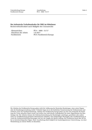Unterabteilung Europa Ausarbeitung Seite 2 Fachbereich Europa PE 6 - 3000 - 51/17 Der italienische Verhaltenskodex für NRO im Mittelmeer Rechtsverbindlichkeit nach Maßgabe des Unionsrechts Aktenzeichen: PE 6 - 3000 - 51/17 Abschluss der Arbeit: 1.8.2017 Fachbereich: PE 6: Fachbereich Europa Die Arbeiten des Fachbereichs Europa geben nicht die Auffassung des Deutschen Bundestages, eines seiner Organe oder der Bundestagsverwaltung wieder. Vielmehr liegen sie in der fachlichen Verantwortung der Verfasserinnen und Verfasser sowie der Fachbereichsleitung. Arbeiten des Fachbereichs Europa geben nur den zum Zeitpunkt der Erstel- lung des Textes aktuellen Stand wieder und stellen eine individuelle Auftragsarbeit für einen Abgeordneten des Bun- destages dar. Die Arbeiten können der Geheimschutzordnung des Bundestages unterliegen, geschützte oder andere nicht zur Veröffentlichung geeignete Informationen enthalten. Eine beabsichtigte Weitergabe oder Veröffentlichung ist vorab der Fachbereichsleitung anzuzeigen und nur mit Angabe der Quelle zulässig. Der Fachbereich berät über die da- bei zu berücksichtigenden Fragen. Diese Ausarbeitung dient lediglich der bundestagsinternen Unterrichtung, von einer Weiterleitung an externe Stellen ist abzusehen.