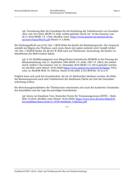 Wissenschaftliche Dienste Kurzinformation Seite 2 Berechnung der Überbaurente vgl. Verordnung über die Grundsätze für die Ermittlung der Verkehrswerte von Grundstü- cken vom 19.5.2010, (BGBl I S. 639), zuletzt geändert durch Art. 16 des Gesetzes vom 26.11.2019 (BGBl. I S. 1794), abrufbar unter: https://www.gesetze-im-internet.de/im- mowertv/ImmoWertV.pdf (Stand 17.3.2020). Die Duldungspflicht aus § 912 Abs. 1 BGB bildet die Quelle des Rentenanspruchs. Der Anspruch entsteht mit Beginn des Überbaus, auch wenn dieser erst später entdeckt wird. Gemäß Artikel 181 Abs. 1 EGBGB finden die §§ 912 ff. BGB auch auf Überbauten Anwendung, die bereits vor Inkrafttreten des BGB existiert haben, vgl. § 181 Einführungsgesetz zum Bürgerlichen Gesetzbuche (EGBGB) in der Fassung der Bekanntmachung vom 21. September 1994 (BGBl. I S. 2494; 1997 I S. 1061), das zuletzt durch Artikel 3 des Gesetzes vom 21. Dezember 2019 (BGBl. I S. 2911) geändert worden ist; abrufbar unter (Stand: 18.03.2020) https://www.gesetze-im-internet.de/bgbeg/; Fritz- sche, in: BeckOK BGB, 53. Edition, Stand: 01.02.2020, § 912 BGB Rn. 34 m.w.N. Folglich kann sich auch bei Grundstücken, die im 19. Jahrhundert überbaut wurden, die Höhe des Rentenanspruchs nach dem Verkehrswert der überbauten Fläche zur Zeit der Grenzüber- schreitung richten. Die Berechnungsmodalitäten der Überbaurente entscheiden sich nach den konkreten Umständen des Einzelfalles und der Lage des jeweiligen Grundstücks, vgl. hierzu im Einzelnen Tom, Deutscher Verein für Vermessungswesen (DVW) – Merk- blatt 15-2018, abrufbar unter (Stand: 18.03.2020): https://www.dvw.de/sites/default/fi- les/merkblatt/daten/2018/15_DVW-Merkblatt_Ueberbau.pdf. *** Fachbereich WD 7 (Zivil-, Straf- und Verfahrensrecht, Bau und Stadtentwicklung)