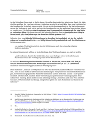 Wissenschaftliche Dienste Sachstand Seite 13 WD 2 - 3000 - 034/19 in der Jüdischen Oberschule in Berlin kaum. Sie selbst begründet ihre Motivation damit, ihr habe die Idee gefallen, ihr Land zu schützen. Außerdem wurde ihr schnell klar, dass eine Laufbahn bei der Bundeswehr Sicherheit bieten würde. Für sie ist die Bundeswehr nicht die Nachfolgeorgani- sation der Wehrmacht und „nicht mal mit der Bundeswehr aus den sechziger bis achtziger Jahren zu vergleichen“. Ihr bedeutet das Grundgesetz eine Errungenschaft, die es gerade für eine Jüdin zu verteidigen lohne. Sie betrachtet sich als lebenden Beweis, dass es einen jüdischen Alltag in Deutschland gibt, dass Juden sogar im deutschen Militär präsent sind. 39 Schuster sieht eine jüdische Militärseelsorge in derselben Notwendigkeit wie bei der katholi- schen und evangelischen Kirche – und billigt dieses Recht grundsätzlich auch den Muslimen zu: Militärimame seien „zu erwägen. Wichtig ist natürlich, dass die Militärimame auch das notwendige religiöse 40 Spektrum abdecken.“ In seinem Gesamturteil schloss er sich allerdings dem Wehrbeauftragten an: Auch er wollte „nicht verhehlen, dass ich das Gefühl habe, dass unser Anliegen bei der zivilen Leitung im Bundesministerium der Verteidigung nicht oberste Priorität hat“.41 So stellt die Benennung der Bundeswehr-Kaserne in Aachen im Januar 2014 nach dem jü- dischen Frontsoldaten des Ersten Weltkrieges und Gründer des RJF Dr. Leo Löwenstein immerhin eine erinnerungsgeschichtliche Würdigung dar. 42 Dem studierten Chemiker und Physiker war 1917 das Eiserne Kreuz Erster Klasse verliehen wor- den, weil er seine mehr als 20 technischen Erfindungen - beispielsweise spezielle Schallmessun- gen, mit denen man gegnerische Standorte bestimmen und als Ziel orten konnte - nicht patent- rechtlich schützen ließ, sondern deren Verwertung aus patriotischer Überzeugung dem deut- schen Staat übertrug. Jener dankte es ihm allerdings wenig: Löwenstein und seine Frau überleb- ten das KZ Theresienstadt nur knapp, emigrierten später erst nach Schweden und dann in die Schweiz. 43 39 Annabel Wahba, Die jüdische Kameradin, in: Zeit Online, 7.7.2011; https://www.zeit.de/2011/28/Soldatin [letz- ter Zugriff: 16.3.2019]. 40 Josef Schuster über jüdische Seelsorge und die Aufgabe von Rabbinern in der Bundeswehr. Ein Interview von Hans-Urich Dillmann, in: Jüdische Allgemeine, 21.2.2019; https://www.juedische-allgemeine.de/politik/wir- brauchen-militaerrabbiner/ [letzter Zugriff: 13.3.2019]. 41 Ebd. 42 Michael Hollenbach, „Eine große Freude und Ehre“. Aachener Kaserne nach jüdischem Weltkriegssoldaten be- nannt, in: Deutschlandfunk Kultur, 7.2.2014; https://www.deutschlandfunkkultur.de/bundeswehr-eine-grosse- freude-und-ehre.1079.de.html?dram:article_id=276884 [letzter Zugriff: 16.3.2019]. 43 Hollenbach, Vom Außenseiter zum Kameraden [wie Anm. 11],