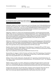 Wissenschaftliche Dienste Sachstand Seite 21 WD 5 - 3000 - 188/14 EU-Kommission (2013). Commission staff working document. Impact assessment report on the future of EU-US trade relations. SWD (2013) 68 final. Felbermayr, Gabriel et al. (2013). Dimensionen und Auswirkungen eines Freihandelsabkommens zwischen der EU und den USA. Studie im Auftrag des Bundesministeriums für Wirtschaft und Technologie. 8. Februar 2013. http://www.bmwi.de/BMWi/Redaktion/PDF/Publikationen/Stu- dien/dimensionen-auswirkungen-freihandelsabkommens-zwischen-eu-usa-summary,pro- perty=pdf,bereich=bmwi2012,sprache=de,rwb=true.pdf Felbermayr, Gabriel et al. (2013). Die Transatlantische Handels- und Investitionspartnerschaft (THIP). Wem nutzt ein transatlantisches Freihandelsabkommen? Teil 1: Makroökonomische Ef- fekte. (Studie im Auftrag der Bertelsmann-Stiftung). http://www.ged-project.de/fileadmin/uplo- ads/documents/pdf/study_transatlantisches_freihandelabkommen_de.pdf; Korrigendum http://www.cesifo-group.de/portal/page/portal/DocBase_Service/DB_Service_Down- loads/DB_more/corrigendum_d.pdf Felbermayr, Gabriel et al. (2013). Bundesländer, Branchen und Bildungsgruppen: Wirtschaftliche Folgen eines Transatlantischen Freihandelsabkommens (THIP) für Deutschland, Mikroökonomi- sche Analyse (Teil 2 der THIP-Gesamtstudie). (Studie im Auftrag der Bertelsmann-Stiftung). http://www.ged-shorts.de/wp-content/uploads/2013/10/TTIP_II_de1.pdf Hamilton, Daniel S. (2014). Mega-Regional Trade Diplomacy: Comparing TPP and TTIP. Center for Transatlantic Relations, Johns Hopkins University’s School of Advanced International Studies and the American Consortium on EU Studies. http://www.tandfonline.com/doi/pdf/10.1080/03932729.2014.877223 Hansen-Kuhn, K.; Suppan, S. (2013). Promises and Perils of the TTIP: Negotiating a Transatlantic Agricultural Market. The Institute for Agriculture and Trade Policy. Heinrich Böll Foundation. http://www.iatp.org/files/2013_10_25_TTIP_KHK.pdf Mildner, Stormy-Annika; Schmucker, Claudia (2013). It’s Agriculture, Stupid! Stolpersteine auf dem Weg zu einem transatlantischen Handelsabkommen. ifo Schnelldienst 3/2013 – 66. Jahrgang – 14. Februar 2013. Mildner, Stormy-Annika et al. (2013). Abkommen mit Nebenwirkungen? Die EU und die USA stehen vor Verhandlungen über eine Transatlantische Handels- und Investitionspartnerschaft. http://www.swp-berlin.org/fileadmin/contents/products/aktuell/2013A26_mdn_schmucker.pdf Friends of the earth (2013). EU-US trade deal: A bumper crop for ‘big food’? How fair and sus- tainable food and farming could be permanently damaged by a transatlantic trade deal. http://www.foeeurope.org/sites/default/files/foee_iatp_factsheet_ttip_food_oct13.pdf
