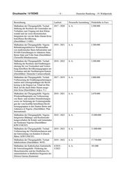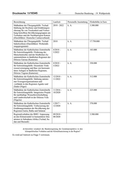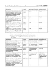 Drucksache 19/10345 –8– Deutscher Bundestag – 19. Wahlperiode Bezeichnung Laufzeit Personelle Ausstattung Förderhöhe in Euro Maßnahme der Übergangshilfe: Tschad: 2017 - 2020 k. A. 2.500.000 Stärkung der Resilienz der Gemeinden am Tschadsee zum Umgang mit dem Klima wandel und zur sozio-ökonomischen Integration der von der Boko Haram Krise betroffenen Bevölkerung (Durchführer: CARE) Maßnahme der Übergangshilfe: Nigeria: 2018 - 2021 k. A. 2.300.000 Behinderungsinklusiver Wiederaufbau von medizinischer Basis-Infrastruktur und WASH-Einrichtungen in Adamawa State, Borno State und Yobe State (Durchführer: Christoffel Blindemission) Maßnahme der Übergangshilfe: Tschad: 2018 - 2022 k. A. 3.308.000 Stärkung der Resilienz und Ernährungssi cherung für von Trockenheit und Vertrei bung betroffene Bevölkerungsgruppen am Tschadsee und der Nachbarregion Kanem (Durchführer: Deutscher Caritasverband) Maßnahme der Übergangshilfe: Tschad: 2017 - 2019 k. A. 2.000.000 Verbesserung der Ernährungssicherungssi tuation und Lebensgrundlagen der Bevöl kerung in der Region Lac Tchad im Hin blick auf die durch Boko Haram ausge löste Krise (Durchführer: help e. V.) Maßnahme der Übergangshilfe: Nigeria: 2018 - 2021 k. A. 2.670.000 Wiederaufbauprojekt zur Verbesserung von Basis- und sozialen Dienstleistungen sowie zur Sicherung der Existenzgrundla gen der vom Konflikt betroffenen Bevöl kerungsgruppen in den Staaten Borno und Adamawa in Nigeria. (Durchführer: Plan International) Maßnahme der Übergangshilfe: Nigeria: 2018 - 2023 k. A. 15.000.000 Integriertes Bildungs- und Resilienzstär kungsvorhaben für Kinder und Gemeinden im Nordosten Nigerias (Durchführer: KfW/UNICEF) Maßnahme der Übergangshilfe: Tschad: 2018 - 2023 k. A. 11.000.000 Verbesserung der Überlebenschancen und der Entwicklung von Kindern II (Durch führer: KfW/UNICEF) Maßnahme der Übergangshilfe: Tschad: 2018 - 2022 k. A. 17.750.000 Sahelresilienz (Durchführer: WFP) Maßnahme der Katholischen Zentralstelle 4/2018 - k. A. 183.000 für Entwicklungshilfe: Förderung der 3/2022 Menschenrechte und der friedlichen Zu sammenlebens in ländlichen Regionen der Diözese Garoua (Kamerun)