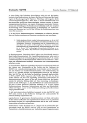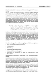 Drucksache 19/21178 –8– Deutscher Bundestag – 19. Wahlperiode (BMVI), das Bundesministerium der Verteidigung (BMVg), das Bundesminis- terium für Wirtschaft und Energie (BMWi), das BKAmt, die Beauftragte der Bundesregierung für Migration, Flüchtlinge und Integration und die Beauftrag- te der Bundesregierung für Kultur und Medien teilgenommen. An der IMA-Sitzung vom 23. August 2018 haben BMFSFJ, BMI, AA, die Be- auftragte der Bundesregierung für Migration, Flüchtlinge und Integration, BKAmt, die Beauftragte der Bundesregierung für Kultur und Medien, BMAS, BMBF, BMEL, Bundesministerium für Gesundheit (BMG), BMJV, BMVg, BMVI und BMWi teilgenommen. An der IMA-Sitzung vom 3. April 2019 haben BMFSFJ, BMI, die Beauftragte der Bundesregierung für Migration, Flüchtlinge und Integration, BKAmt, die Beauftragte der Bundesregierung für Kultur und Medien, BMBF, BMEL, BMJV, BMVg und BMWi teilgenommen. b) Welche spezifischen Maßnahmen und Vorhaben zu den im NAP auf- geführten Handlungsfeldern und Schwerpunkten wurden bisher durch die Interministerielle Arbeitsgruppe weiterentwickelt (bitte die ein- zelnen Handlungsfelder mit den dazugehörigen Maßnahmen und Vor- haben auflisten)? c) Welche spezifischen Maßnahmen und Vorhaben zu den im NAP auf- geführten Handlungsfeldern und Schwerpunkten wurden bisher durch die Interministerielle Arbeitsgruppe neu aufgelegt oder entworfen (bitte die einzelnen Handlungsfelder mit den dazugehörigen Maßnah- men und Vorhaben auflisten)? Die Fragen 6b und 6c werden gemeinsam beantwortet. Es wird auf die Tabelle in der Anlage zu Frage 6 verwiesen. 7. Wie lauten die Prüfergebnisse der Interministeriellen Arbeitsgruppe be- züglich der Ansatzpunkte für Rassismus in Institutionen (Arbeitsweisen, Verfahrensregelungen, Handlungsroutinen und Prozessabläufe), und wie wurde und wird diesen – sofern Prüfergebnisse vorliegen– begegnet (vgl. NAP, S. 44)? Konzepte zur Auseinandersetzung mit und zum Abbau von möglichen Ansatz- punkten von Rassismus in Institutionen gehören zum grundlegenden Verständ- nis der Arbeit aller Bundesressorts und werden in den jeweiligen Maßnahmen, die Bezug auf Arbeitsweisen, Verfahrensregelungen, Handlungsroutinen und Prozessabläufe nehmen, umgesetzt. Darüber hinaus wird auf die Antworten zu Frage 5 und Frage 6 verwiesen. 8. Wie häufig hat sich das „Forum gegen Rassismus“, das die Umsetzung der Maßnahmen des NAP regelmäßig als Gegenstand im Rahmen seines Kon- sultationsprozesses bearbeiten soll, seit der Veröffentlichung des NAP be- reits getroffen? Das Forum gegen Rassismus tagt in der Regel zwei Mal pro Jahr, so auch seit der Veröffentlichung des NAP. Die konkrete Ausgestaltung und Vorbereitung spezifischer Themen für die jeweiligen Sitzungen obliegt einer geschäftsfüh- renden Arbeitsgruppe, bestehend aus Mitgliedern zivilgesellschaftlicher Initia- tiven, Ressorts der Bundesregierung und Vertretern aus den Ländern.