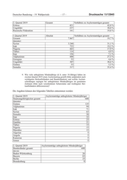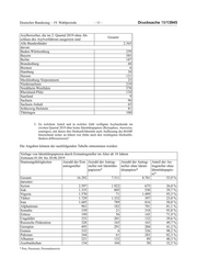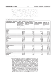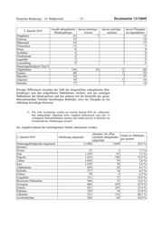 Drucksache 19/13945 – 16 – Deutscher Bundestag – 19. Wahlperiode Die weiteren Angaben können der folgenden Tabelle entnommen werden. Teil- mengen sind eingerückt zur beinhaltenden Menge angegeben. 8. Wie viele der Asylsuchenden im zweiten Quartal 2019 waren sogenannte Nachgeborene, d. h. hier geborene Kinder von Asylsuchenden oder Flüchtlingen (bitte in absoluten und relativen Zahlen angeben und nach den zehn wichtigsten Herkunftsländern differenzieren), und welche An- gaben oder Einschätzungen können dazu gemacht werden, wie viele die- ser Kinder von Asylsuchenden im Verfahren bzw. von bereits anerkann- ten Flüchtlingen stammen (bitte ausführen)? Der Aufenthaltsstatus der Eltern kann nicht ermittelt werden. Die weiteren An- gaben können den nachfolgenden Tabellen entnommen werden: 2. Quartal 2019 Gesamt Verhältnis zu Asylerstanträgen gesamt Gesamt 7.082 22,1 % darunter: Syrien 2.875 33,4 % Irak 645 21,3 % Nigeria 673 25,6 % Türkei 102 4,3 % Iran 145 6,6 % Afghanistan 592 27,3 % Somalia 290 35,3 %