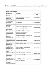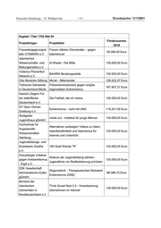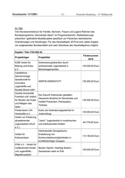 Deutscher Bundestag – 19. Wahlperiode – 13 – Drucksache 19/13991 Darüber hinaus werden im Programmbereich „Partnerschaften für Demokratie“ den Gebietskörperschaften und im Programmbereich „Landes-Demokratiezen- tren“ den 16 Bundesländern Fördermittel zur Verfügung gestellt, um damit ge- zielt den regional sehr unterschiedlichen Problemlagen vor Ort begegnen zu können. Zudem ist die Schwerpunktsetzung sehr vieler Einzelprojekte und gan- zer Programmbereiche im Bundesprogramm größtenteils Phänomen übergrei- fend angelegt, wie etwa im Programmbereich „Stärkung des Engagements im Netz – gegen Hass im Netz“ oder im Programmbereich „Prävention und Dera- dikalisierung in Strafvollzug und Bewährungshilfe“. Dadurch ist eine direkte thematische Zuordnung dieser Fördermittel nicht möglich. Deshalb wird darauf hingewiesen, dass die unter Kapitel / Titel 1702 684 04 aufgeführten Förder- summen nicht die aufgewandten Gesamtmittel für den Phänomenbereich isla- mistische Orientierungen und Handlungen im Bundesprogramm „Demokratie leben!“ umfassen. Das BMI fördert über den Haushaltsplan 06 das Nationale Zentrum Kriminal- prävention (NZK) mit einem Haushaltsansatz von 500.000 Euro. Als wissen- schaftlicher Fachdienst für Kriminalpolitik und Kriminalprävention verfolgt das NZK einen phänomenübergreifenden Ansatz, der auch Aktivitäten im Be- reich der Extremismusprävention umfasst. Mit einem Haushaltsansatz von 250.000 Euro fördert das BMI das NZK-Projekt „Entwicklung von Evalua- tionskriterien in der Extremismusprävention“ (EEE). Zielsetzung des Projekts ist es, einen Beitrag zur Entwicklung von Evaluationskriterien in der Islamis- musprävention zu leisten. Im Rahmen der Umsetzung des „Nationalen Präventionsprogramm gegen isla- mistischen Extremismus“ setzt die Bundeszentrale für politische Bildung (bpb) eine Reihe von Einzelmaßnahmen um. Auf den Punkt c in der Anlage zu Frage 15 wird verwiesen. 16. Welche Programme, Maßnahmen und Projekte im Bereich Präventions- und Deradikalisierungsarbeit Islamismus sind vor allem auf rückkehrende und rückgeführte Erwachsene ausgerichtet, und welche zusätzlichen sind in Planung? Es wird auf die Antwort zu Frage 6 verwiesen. Außerdem wird insbesondere auf die Tätigkeit des bundesweiten Beratungsnetzwerkes, derzeit bestehend aus 13 zivilgesellschaftlichen und vier staatlichen Angeboten, aufmerksam ge- macht. Zusätzlich existieren zahlreiche Angebote im Vollzugskontext, die durch Justiz- und Sozialressorts der Länder gefördert werden. Die BAMF-Beratungsstelle Radikalisierung erfüllt in diesem Kontext ebenfalls eine „Frühwarnfunktion“: Bei erheblicher Steigerung der jeweiligen Bedarfe können sinnvolle Ergänzungen der Projektlandschaft vorgenommen werden. 17. Welche Programme, Maßnahmen und Projekte im Bereich Präventions- und Deradikalisierungsarbeit Islamismus sind vor allem auf rückkehrende und rückgeführte Kinder ausgerichtet, und welche zusätzlichen sind in Planung? Für die (Re-)Integration der Kinder sind primär die Erziehungs- und Sorgebe- rechtigten sowie die Jugendämter zuständig. Je nach Einzelfall sollte der Fokus hierbei auf gesundheitlichen, insbesondere psycho-traumatologisch orientierten Maßnahmen liegen. Hinzu kommen die Bedarfe in den Bereichen Schule, Kin- dertagesstätten, Kinder- und Jugendhilfeeinrichtungen u. v. m. Alle o. g. betei- ligten Institutionen sollen im Rahmen der Koordinierungsprojekte einzelfallbe- zogen sensibilisiert werden und kontinuierliche Unterstützung im Umgang mit