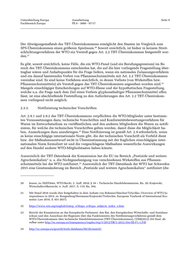 Unterabteilung Europa Ausarbeitung Seite 9 Fachbereich Europa PE 6 - 3000 - 97/17 Der Abwägungsmaßstab des TBT-Übereinkommens ermöglicht den Staaten im Vergleich zum SPS-Übereinkommen einen größeren Spielraum. Soweit ersichtlich, ist bisher in keinem Streit- 20 schlichtungsverfahren der WTO ein Verstoß gegen Art. 2.2 TBT-Übereinkommen festgestellt wor- den. 21 Es gibt, soweit ersichtlich, keine Fälle, die ein WTO-Panel (und ein Berufungsgremium) im Be- reich des TBT-Übereinkommens entschieden hat, die auf die hier vorliegende Fragestellung über- tragbar wären und Anhaltspunkte für die Frage liefern, wann ein nationales Zulassungsverfahren und ein darauf basierendes Verbot von Pflanzenschutzmitteln mit Art. 2.2 TBT-Übereinkommen vereinbar sind. Es sind keine Verfahren ersichtlich, in denen Verbote (von Wirkstoffen bzw. Pflanzenschutzmitteln) als Verstoß gegen das TBT-Übereinkommen angesehen worden sind. 22 Mangels einschlägiger Entscheidungen auf WTO-Ebene und der hypothetischen Fragestellung, welche u.a. die Frage nach dem Ziel eines Verbots glyphosathaltiger Pflanzenschutzmittel offen lässt, ist eine abschließende Feststellung zu den Anforderungen des Art. 2.2 TBT-Übereinkom- men vorliegend nicht möglich. 2.3.3. Notifizierung technischer Vorschriften Art. 2.9.1 und 2.9.2 des TBT-Übereinkommens verpflichten die WTO-Mitglieder unter bestimm- ten Voraussetzungen dazu, technische Vorschriften und Konformitätsbewertungsverfahren für Waren im Entwurfsstadium zu veröffentlichen und den anderen Mitgliedern die Waren zu notifi- zieren, für welche die technischen Vorschriften gelten werden, damit diese die Möglichkeit ha- ben, Anmerkungen dazu anzubringen. Eine Notifizierung ist gemäß Art. 2.9 erforderlich, wenn 23 es keine einschlägige internationale Norm gibt, die der technischen Vorschrift als Vorbild dient bzw. der Maßnahmenentwurf nicht in Übereinstimmung mit der fraglichen einschlägigen inter- nationalen Norm formuliert ist und die vorgeschlagene Maßnahme wesentliche Auswirkungen auf den Handel anderer WTO-Mitgliedstaaten haben könnte. Ausweislich der TBT-Datenbank der Kommission hat die EU im Bereich „Pestizide und weitere Agrochemikalien“ u. a. die Nichtgenehmigung von verschiedenen Wirkstoffen aus Pflanzen- schutzmitteln bei der WTO notifiziert. Ausweislich der TBT-Datenbank der WTO hat Schweden 24 2015 eine Gesetzesänderung im Bereich „Pestizide und weitere Agrochemikalien“ notifiziert (die 20 Jessen, in: Hilf/Oeter, WTO-Recht, 2. Aufl. 2010, § 18 – Technische Handelshemmnisse, Rn. 20; Krajewski, Wirtschaftsvölkerrecht, 4. Aufl. 2017, S. 119, Rn. 394. 21 Mit Stand 2016 wurde dies festgehalten in dem Aufsatz von Bohanes/Sánchez/Telychko, Overview of WTO Ju- risprudence in 2014, in: Bungenberg/Herrmann/Krajewski/Terhechte, European Yearbook of International Eco- nomic Law 2016, S. 651 (657). 22 https://www.wto.org/english/tratop_e/dispu_e/dispu_subjects_index_e.htm. 23 Bericht der Kommission an das Europäische Parlament, den Rat, den Europäischen Wirtschafts- und Sozialaus- schuss und den Ausschuss der Regionen über das Funktionieren des Notifizierungsverfahrens gemäß dem WTO-Übereinkommen über technische Handelshemmnisse (TBT-Übereinkommen), COM(2012) 354 final, ab- rufbar unter http://ec.europa.eu/transparency/regdoc/rep/1/2012/DE/1-2012-354-DE-F1-1.Pdf. 24 http://ec.europa.eu/growth/tools-databases/tbt/de/search/.