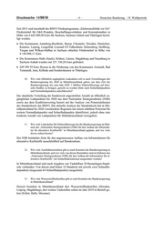 Drucksache 19/9618 –4– Deutscher Bundestag – 19. Wahlperiode Seit 2015 sind innerhalb des BMVI Förderprogramms „Elektromobilität vor Ort“ Fördermittel für F&E-Projekte, Beschaffungsvorhaben und Konzeptstudien in Höhe von 4 645 009,90 Euro für Sachsen, Sachsen-Anhalt und Thüringen bewil ligt worden. Die Kommunen Annaberg-Buchholz, Borna, Chemnitz, Dresden, Hainichen, Kamenz, Leipzig, Lengefeld, Lossatal OT Falkenhain, Schneeberg, Stollberg, Torgau und Wilkau-Haßlau in Sachsen erhielten Fördermittel in Höhe von 4 144 080,11 Euro. Die Kommunen Halle (Saale), Köthen, Lützen, Magdeburg und Naumburg in Sachsen-Anhalt wurden mit 251 330,20 Euro gefördert. 249 599 59 Euro flossen in die Förderung von den Kommunen Arnstadt, Bad Tennstedt, Jena, Kölleda und Sondershausen in Thüringen. 10. Wie viele öffentlich zugängliche Ladesäulen soll es nach Vorstellungen der Bundesregierung bis 2020 in Mitteldeutschland geben, um dem Ziel der Bundesregierung, bis zum Jahr 2020 1 Million Elektrofahrzeuge auf deut sche Straßen zu bringen, gerecht zu werden (bitte nach Schnelladepunkten und Normalladepunkten aufschlüsseln)? Die räumliche Verteilung der bundesweit angestrebten Anzahl an öffentlich zu gänglichen Ladepunkten bis 2020 aus dem Nationalen Strategierahmen (NSR) sowie aus dem Koalitionsvertrag basiert auf der Analyse von Potenzialräumen des Standorttools des BMVI. Die aktuelle Analyse des Standorttools hat in Mit teldeutschland bis 2020 verschiedene Regionen mit einem erhöhten Potenzial für weitere Normalladepunkte und Schnelladepunkte identifiziert, jedoch ohne eine konkrete Anzahl von Ladepunkten für Mitteldeutschland vorzugeben. 11. Wie viele Ladesäulen für Elektrofahrzeuge hat die Bundesregierung im Rah men des „Nationalen Strategierahmen (NSR) für den Aufbau der Infrastruk tur für alternative Kraftstoffe“ in Mitteldeutschland geplant, und wie viele davon stehen bereits? Der NSR beinhaltet Ziele für den angemessenen Aufbau von Infrastrukturen für alternative Kraftstoffe ausschließlich auf Bundesebene. 12. Wie viele Autobahnraststätten gibt es nach Kenntnis der Bundesregierung in Mitteldeutschland, und wie viele von diesen Raststätten sind im Rahmen des „Nationalen Strategierahmen (NSR) für den Aufbau der Infrastruktur für al ternative Kraftstoffe“ mit Schnellladestationen ausgestattet worden? In Mitteldeutschland sind nach Angaben von Tank&Rast 38 Rastanlagen-Stand orte vorhanden. Von diesen sind bisher 32 Standorte mit jeweils zwei Schnellla depunkten (insgesamt 64 Schnellladepunkte) ausgerüstet. 13. Wie viele Wasserstofftankstellen gibt es nach Kenntnis der Bundesregierung in Mitteldeutschland? Derzeit bestehen in Mitteldeutschland drei Wasserstofftankstellen (Dresden, Leipzig, Magdeburg), drei weitere Tankstellen sollen im Jahr 2019 in Betrieb ge hen (Erfurt, Halle, Meerane).