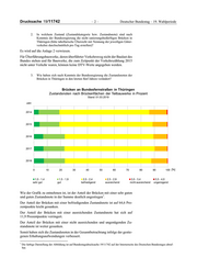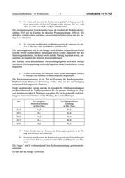 Drucksache 19/11742 –2– Deutscher Bundestag – 19. Wahlperiode 2. In welchem Zustand (Zustandskategorie bzw. Zustandsnote) sind nach Kenntnis der Bundesregierung die nicht sanierungsbedürftigen Brücken in Thüringen (bitte tabellarische Übersicht mit Nennung der jeweiligen Güter verkehre durchschnittlich pro Tag erstellen)? Es wird auf die Anlage 2 verwiesen. Für Überführungsbauwerke, deren überführter Verkehrsweg nicht der Baulast des Bundes stehen und für Bauwerke, die zum Zeitpunkt der Verkehrszählung 2015 nicht unter Verkehr waren, können keine DTV-Werte angegeben werden. 3. Wie haben sich nach Kenntnis der Bundesregierung die Zustandsnoten der Brücken in Thüringen in den letzten fünf Jahren verändert? Wie der Grafik zu entnehmen ist, ist der Anteil der Brücken mit einer sehr guten * und guten Zustandsnote in der Summe deutlich angestiegen . Der Anteil der Brücken mit einer befriedigenden Zustandsnote ist auf 64,6 Pro zentpunkte leicht gesunken. Der Anteil der Brücken mit einer ausreichenden Zustandsnote hat sich auf 11,9 Prozentpunkte verringert. Der Anteil der Brücken mit einer nicht ausreichenden und ungenügenden Zu standsnote ist weiter gesunken. Somit haben sich die Zustandsnoten in der Gesamtbetrachtung infolge der gestie genen Erhaltungsaufwendungen verbessert. * Die farbige Darstellung der Abbildung ist auf Bundestagsdrucksache 19/11742 auf der Internetseite des Deutschen Bundestages abruf bar.