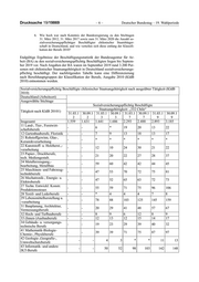 Drucksache 19/19869 –6– Deutscher Bundestag – 19. Wahlperiode 6. Wie hoch war nach Kenntnis der Bundesregierung zu den Stichtagen 31. März 2012, 31. März 2017 sowie zum 31. März 2020 die Anzahl so- zialversicherungspflichtiger Beschäftigter chilenischer Staatsbürger- schaft in Deutschland, und wie verteilen sich diese entlang der Klassifi- kation der Berufe 2010? Endgültige Ergebnisse der Beschäftigungsstatistik der Bundesagentur für Ar- beit (BA) zu den sozialversicherungspflichtig Beschäftigten liegen bis Septem- ber 2019 vor. Nach Angaben der BA waren im September 2019 rund 3.200 Per- sonen mit chilenischer Staatsangehörigkeit in Deutschland sozialversicherungs- pflichtig beschäftigt. Der nachfolgenden Tabelle kann eine Differenzierung nach Berufshauptgruppen der Klassifikation der Berufe, Ausgabe 2010 (KldB 2010) entnommen werden. Sozialversicherungspflichtig Beschäftigte chilenischer Staatsangehörigkeit nach ausgeübter Tätigkeit (KldB 2010) Deutschland (Arbeitsort) Ausgewählte Stichtage Sozialversicherungspflichtig Beschäftigte Staatsangehörigkeit: „332 Chile“ Tätigkeit nach KldB 20101) 31.03.1 30.09.1 31.03.1 30.09.1 31.03.1 30.09.1 31.03.1 30.09.1 2 2 3 3 7 7 9 9 Insgesamt 1.559 1.631 1.641 1.686 2.293 2.488 2.893 3.185 11 Land-, Tier-, Forstwirt- - - 6 * 19 20 13 22 schaftsberufe 12 Gartenbauberufe, Floristik - - 7 9 13 18 13 17 21 Rohstoffgewinn, Glas-, - - * * * * * * Keramikverarbeitung 22 Kunststoff- u. Holzherst.,- - - 12 10 24 30 21 22 verarbeitung 23 Papier-, Druckberufe, - - 21 20 22 27 28 37 tech. Mediengestalt. 24 Metallerzeugung,- - - 59 60 42 42 44 45 bearbeitung, Metallbau 25 Maschinen- und Fahrzeug- - - 47 53 70 72 75 81 technikberufe 26 Mechatronik-, Energie- u. - - 47 52 65 63 72 73 Elektroberufe 27 Techn. Entwickl. Konstr. - - 55 59 71 75 96 106 Produktionssteuer. 28 Textil- und Lederberufe - - * 4 4 4 7 8 29 Lebensmittelherstellung u. - - 78 88 103 125 145 159 -verarbeitung 31 Bauplanung, Architektur, - - 20 29 41 48 57 67 Vermessungsberufe 32 Hoch- und Tiefbauberufe - - 8 9 6 12 8 9 33 (Innen-)Ausbauberufe - - 12 13 12 15 14 17 34 Gebäude- u. versorgungs- - - 19 23 29 39 40 32 technische Berufe 41 Mathematik-Biologie- - - 39 39 71 75 87 97 Chemie-, Physikberufe 42 Geologie-,Geografie-, - - 4 3 * * 11 13 Umweltschutzberufe 43 Informatik- und andere - - 50 52 98 103 142 148 IKT-Berufe