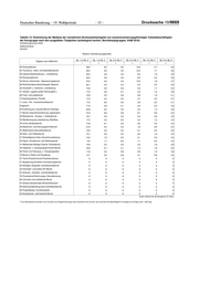 Deutscher Bundestag – 19. Wahlperiode – 31 – Drucksache 19/9669 Tabelle 12: Entwicklung der Mediane der monatlichen Bruttoarbeitsentgelte von sozialversicherungspflichtigen Vollzeitbeschäftigten der Kerngruppe nach den ausgeübten Tatigkeiten (aufsteigend sortiert, Berufshauptgruppen, KldB 2010) Anforderungsniveau Helfer Saarland Zeitreihe Relative Veränderung gegenüber Sp. 1 zu Sp. 6 Sp. 1 zu Sp. 2 Sp. 2 zu Sp. 3 Sp. 3 zu Sp. 4 Sp. 4 zu Sp. 5 Sp. 5 zu Sp. 6 Tätigkeit nach KldB 2010 1 1 1 1 1 1 2 3 4 5 6 1 1 1 1 1 54 Reinigungsberufe 16,8 6,8 3,6 1,3 1,2 3,0 29 Lebensmittelherstellung u. -verarbeitung 11,5 1,2 0,6 1,7 2,5 5,0 22 Kunststoff- u. Holzherst.,-verarbeitung 15,8 -0,9 -0,7 1,8 9,7 5,3 51 Verkehr, Logistik (außer Fahrzeugführ.) -3,1 0,7 -1,7 -3,0 2,6 -1,7 Insgesamt 5,7 2,4 0,4 -0,8 2,0 1,7 32 Hoch- und Tiefbauberufe 6,5 1,2 1,5 1,5 0,1 2,1 52 Führer von Fahrzeug- u. Transportgeräten 4,2 5,6 2,6 1,2 -1,7 -3,2 25 Maschinen- und Fahrzeugtechnikberufe 13,6 2,8 0,6 2,0 4,7 2,8 24 Metallerzeugung,-bearbeitung, Metallbau 6,3 2,0 -3,4 3,1 4,9 -0,2 11 Land-, Tier-, Forstwirtschaftsberufe X X X X X X 12 Gartenbauberufe, Floristik X X X X X X 21 Rohstoffgewinn,Glas-,Keramikverarbeitung X X X X X X 23 Papier-,Druckberufe, tech.Mediengestalt. X X X X X X 26 Mechatronik-, Energie- u. Elektroberufe X X X X X X 27 Techn.Entwickl.Konstr.Produktionssteuer. X X X X X X 28 Textil- und Lederberufe X X X X X X 31 Bauplanung,Architektur,Vermessungsberufe X X X X X X 33 (Innen-)Ausbauberufe X X X X X X 34 Gebäude- u. versorgungstechnische Berufe X X X X X X 41 Mathematik-Biologie-Chemie-,Physikberufe X X X X X X 42 Geologie-,Geografie-,Umweltschutzberufe X X X X X X 43 Informatik- und andere IKT-Berufe X X X X X X 53 Schutz-,Sicherheits-, Überwachungsberufe X X X X X X 61 Einkaufs-, Vertriebs- und Handelsberufe X X X X X X 62 Verkaufsberufe X X X X X X 63 Tourismus-, Hotel- und Gaststättenberufe X X X X X X 71 Berufe Unternehmensführung,-organisation X X X X X X 72 Finanzdienstl.Rechnungsw.,Steuerberatung X X X X X X 73 Berufe in Recht und Verwaltung X X X X X X 81 Medizinische Gesundheitsberufe X X X X X X 82 Nichtmed.Gesundheit,Körperpfl.,Medizint. X X X X 1,6 2,8 83 Erziehung,soz.,hauswirt.Berufe,Theologie X X X X X X 84 Lehrende und ausbildende Berufe X X X X X X 91 Geistes-Gesellschafts-Wirtschaftswissen. X X X X X X 92 Werbung,Marketing,kaufm,red.Medienberufe X X X X X X 93 Produktdesign, Kunsthandwerk X X X X X X 94 Darstellende, unterhaltende Berufe X X X X X X Quelle: Statistik der Bundesagentur für Arbeit x) Aus methodischen Gründen ist ein Ausweis von Entgeltverteilungen oder Quantilen nicht sinnvoll, wenn die Zahl der Beschäftigten mit Angabe zum Entgelt unter 1.000 liegt.