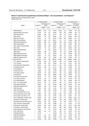 Drucksache 19/21734 – 60 – Deutscher Bundestag – 19. Wahlperiode 1) Tabelle 2: Sozialversicherungspflichtige Vollzeitbeschäftigte - ohne Auszubildende - nach Regionen Deutschland, West- und Ostdeutschland, Länder und Kreise (Arbeitsort) (Gebietsstand des jeweiligen Stichtags) Zeitreihe 1999 - 2019 31. Dezember 2008 31. Dezember 2009 31. Dezember 2010 Veränderung zum Veränderung zum Veränderung Region Insgesamt Vorjahr Insgesamt Vorjahr Insgesamt zum Vorjahr absolut in % absolut in % absolut in % 28 29 30 31 32 33 34 35 36 13053 Güstrow 19.310 -3 -0,0 19.047 -263 -1,4 19.633 586 3,1 13054 Ludwigslust 26.769 113 0,4 26.378 -391 -1,5 26.788 410 1,6 13055 Mecklenburg-Strelitz 12.175 86 0,7 12.290 115 0,9 12.178 -112 -0,9 13056 Müritz 14.738 261 1,8 14.747 9 0,1 15.179 432 2,9 13057 Nordvorpommern 16.969 430 2,6 16.734 -235 -1,4 17.363 629 3,8 13058 Nordwestmecklenburg 18.902 -747 -3,8 19.011 109 0,6 19.322 311 1,6 13059 Ostvorpommern 19.752 574 3,0 20.273 521 2,6 20.407 134 0,7 13060 Parchim 17.662 -82 -0,5 17.891 229 1,3 17.816 -75 -0,4 13061 Rügen 14.397 787 5,8 14.806 409 2,8 14.804 -2 -0,0 13062 Uecker-Randow 12.607 433 3,6 12.331 -276 -2,2 12.499 168 1,4 13071 Mecklenburgische Seenplatte - - - - - - - - - 13072 Landkreis Rostock - - - - - - - - - 13073 Vorpommern-Rügen - - - - - - - - - 13074 Nordwestmecklenburg - - - - - - - - - 13075 Vorpommern-Greifswald - - - - - - - - - 13076 Ludwigslust-Parchim - - - - - - - - - 14 Sachsen 1.015.880 3.963 0,4 997.351 -18.529 -1,8 1.028.770 31.419 3,2 14013 Auerbach - - - - - - - - - 14036 Klingenthal - - - - - - - - - 14042 Oelsnitz - - - - - - - - - 14045 Plauen - - - - - - - - - 14046 Reichenbach - - - - - - - - - 14061 Chemnitz, Stadt - - - - - - - - - 14062 Dresden, Stadt - - - - - - - - - 14063 Görlitz, Stadt - - - - - - - - - 14064 Hoyerswerda - - - - - - - - - 14065 Leipzig, Stadt - - - - - - - - - 14066 Plauen, Stadt - - - - - - - - - 14067 Zwickau, Stadt - - - - - - - - - 14071 Annaberg - - - - - - - - - 14072 Bautzen - - - - - - - - - 14073 Chemnitzer Land - - - - - - - - - 14074 Delitzsch - - - - - - - - - 14075 Döbeln - - - - - - - - - 14077 Freiberg - - - - - - - - - 14078 Name unbekannt - - - - - - - - - 14079 Leipziger Land - - - - - - - - - 14080 Meißen - - - - - - - - - 14081 Mittlerer Erzgebirgskreis - - - - - - - - - 14082 Mittweida - - - - - - - - - 14083 Muldentalkreis - - - - - - - - - 14084 Niederschlesischer Oberlausitz - - - - - - - - - 14085 Riesa-Großenhain - - - - - - - - - 14086 Sächsischer Oberlausitzkreis - - - - - - - - - 14087 Sächsische Schweiz - - - - - - - - - 14088 Stollberg - - - - - - - - - 14089 Torgau-Oschatz - - - - - - - - -