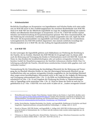 Wissenschaftliche Dienste Sachstand Seite 5 WD 9 - 3000 - 105/18 3. Schulsozialarbeit Rechtliche Grundlagen zur Kooperation von Jugendämtern und Schulen finden sich unter ande- rem im SGB VIII sowie in den Ausführungsgesetzen der einzelnen Bundesländer zum SGB VIII. 4 Nach § 81 SGB VIII hat die öffentliche Jugendhilfe im Zuge der Aufgabenerfüllung mit anderen Stellen und öffentlichen Einrichtungen zu kooperieren. In § 81 Nr. 3 SGB VIII werden explizit Schulen und Schulverwaltung als Kooperationspartner genannt. Wie diese Zusammenarbeit, die der Förderung der schulischen Ausbildung dient, konkret ausgestaltet sein soll, regelt das SGB VIII nicht. Die Kooperationsfelder von Jugendhilfe und Schule werden über die verschiedenen Leistungsbereiche des SGB VIII rechtlich abgesichert; eine zentrale rechtliche Grundlage der 5 Schulsozialarbeit ist § 13 SGB VIII, der den Auftrag der Jugendsozialarbeit definiert. 4. § 20 SGB VIII Zu den Leistungen der Jugendhilfe gehören auch Maßnahmen zur Förderung der Erziehung in der Familie, die im Zweiten Abschnitt des SGB VIII (§§ 16-21) geregelt sind. Zu diesen zählt auch die Betreuung und Versorgung des Kindes in Notsituationen nach § 20 SGB VIII. Zweck der Norm ist, dass Kindern bei krankheitsbedingtem oder auf anderen zwingenden Gründen beru- hendem Ausfall der Hauptbetreuungsperson der familiäre Lebensraum erhalten bleibt. Eine Un- terbringung außerhalb der Familie, obwohl keine erzieherischen Gründe dafür gegeben sind, soll 6 verhindert werden. Voraussetzung für die Unterstützung des berufstätigen Elternteils bei der Betreuung und Versor- gung des im Haushalt lebenden Kindes ist, dass der überwiegend betreuende Elternteil aus ge- sundheitlichen oder aus anderen zwingenden Gründen ausgefallen ist, der berufstätige Elternteil eben wegen seiner berufsbedingten Abwesenheit nicht in der Lage ist, die Aufgabe der Betreuung und Versorgung wahrzunehmen (Abs. 1 Nr. 1), die Hilfe zur Gewährleistung des Kindeswohls erforderlich ist (Abs. 1 Nr. 2) und Angebote der Förderung des Kindes in Tageseinrichtungen 7 oder in Tagespflege nicht ausreichen (Abs. 1 Nr. 3). Kind im Sinne der Norm ist nach der Le- galdefinition in § 7 Abs. 1 SGB VIII, wer noch nicht 14 Jahre alt ist. „Andere zwingende Gründe“ 4 Weiterführende Literatur: Kunkel, Peter-Christian, Soziale Arbeit an der Schule, 4. April 2015, abrufbar unter: http://www.sgbviii.de/files/SGB%20VIII/PDF/S89.pdf; Kunkel, Peter-Christian, Gesetzliche Verankerung von Schulsozialarbeit, Gewerkschaft Erziehung und Wissenschaft (Hrsg.), Dezember 2016, S. 13 ff., abrufbar unter: http://www.kv-schulsozialarbeit.de/Gesetzliche_Verankerung_von_SchuSoz.pdf. 5 Jordan, Erwin/Maykus, Stephan/Stuckstätte, Eva, Kinder- und Jugendhilfe, Einführung in Geschichte und Hand- lungsfelder, Organisationsformen und gesellschaftliche Problemlagen, 3. Auflage, 2012, S. 163 ff. 6 Struck in: Wiesner, SGB VIII, Kinder- und Jugendhilfe, 5. Auflage 2015, SGB VIII § 20 Betreuung und Versor- gung des Kindes in Notsituationen, Rn. 1-4; Dieser und alle weiteren Links wurden zuletzt abgerufen am: 28. Januar 2019. 7 Tillmanns in: Säcker, Jürgen/Rixecker, Roland/Oetker, Hartmut/u.a. (Hrsg.), Münchener Kommentar zum Bür- gerlichen Gesetzbuch (MüKo BGB), 7. Aufl. 2017, SGB VIII § 20, Rn. 2.