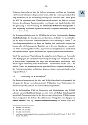 - 10 - Ordnet der Gesetzgeber an, dass die Aufgaben gemeinsam von Bund und Gemeinden oder Gemeindeverbänden wahrgenommen werden, ist für die verfassungsrechtliche Prü- fung entscheidend, ob die Verwaltungszuständigkeiten von Bund und Ländern gemäß Art. 83ff. GG eingehalten sind. Überschreitet der Gesetzgeber die ihm dort gesetzten Grenzen des zulässigen Zusammenwirkens von Bundes- und Landesbehörden, führt dies gleichzeitig zu einer Verletzung der kommunalen Selbstverwa ltungsgarantie in ihrer Ausprägung als Garantie eigenverantwortlicher Aufgabenwahrnehmung im Sinne des Art. 28 Abs. 2 GG. Die Kompetenzaufteilung nach Art. 83 GG ist eine wichtige Ausformung des bunde s- staatlichen Prinzips des Grundgesetzes und dient dazu, die Länder vor einem Eindrin- 26 gen des Bundes in den ihnen vorbehaltenen Bereich der Verwaltung zu schützen. Die Verwaltungszuständigkeiten von Bund und Ländern sind grundsätzlich getrennt und können selbst mit Zustimmung der Beteiligten nur in den vom Grundgesetz vorgesehe- nen Fällen zusammengeführt werden. Zugewiesene Zuständigkeiten sind grundsätzlich mit eigenem Personal, eigenen Sachmitteln und eigener Organisation wahrzunehmen. Durch die gemeinsame Wahrnehmung der Aufgaben durch Organe oder Amtswalter unter Bedingungen, die eine klare Verantwortungszuordnung nicht ermöglichen, fehlt es an demokratischer Legitimation. Der Bürger muss wissen können, wen er wofür - auch 27 durch Vergabe oder Entzug seiner Wählerstimme - verantwortlich machen kann. Be- sondere Gründe, die ausnahmsweise eine gemeinschaftliche Aufgabenwahrnehmung in den Arbeitsgemeinschaften rechtfertigen könnten, existieren nach dem Bundesverfas- 28 sungsgericht nicht. 29 5.3. Verwendung von Wahlcomputern Das Bundesverfassungsgericht hat über zwei Wahlp rüfungsbeschwerden geurteilt, die sich gegen den Einsatz von rechnergesteuerten Wahlgeräten (sog. Wahlcomputer) bei der Bundestagswahl 2005 zum 16. Deutschen Bundestag richteten. Bei der herkömmlichen Wahl mit Stimmzetteln sind Manipulationen oder Wahlfä l- schungen nur mit erheblichem Einsatz und unter einem sehr hohen Entdeckungsrisi- ko möglich. Programmierfehler in der Software oder zielgerichtete Wahlfälschungen durch Manipulation der Software bei elektronischen Wahlgeräten sind dagegen nur schwer erkennba r. Die sog. Bundeswahlgeräteverordnung ist deshalb wegen Ver- 26 BVerfGE 108, 169 (181f.). 27 BVerfGE 119, 331 (366). 28 BVerfGE 119, 331 (370). 29 www.bundesverfassungsgericht.de/entscheidungen/cs20090303_2bvc000307.html, 2 BvC 3/07, [Stand: 19.08.2009].