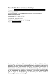 Wissenschaftliche Dienste des Deutschen Bundestages Verfasser/in: Verfassungsgrundsätze Die Absicherung der Verfassungsgrundsätze durch die Rechtsprechung des Bundesverfassungsgerichts Ausarbeitung WD 3 - 3000 - 297/09 Abschluss der Arbeit: 20.08.2009 Fachbereich WD 3: Verfassung und Verwaltung Telefon: Ausarbeitungen und andere Informationsangebote der Wissenschaftlichen Dienste geben nicht die Auffassung des Deutschen Bundestages, eines seiner Organe oder der Bundestagsverwaltung wieder. Vielmehr liegen sie in der fachlichen Verantwortung der Verfasserinnen und Verfasser sowie der Fachbereichsleitung. Die Arbeiten der Wissenschaftlichen Dienste sind dazu bestimmt, Mitglieder des Deutschen Bundestages bei der Wahrnehmung des Mandats zu unterstützen. Der Deutsche Bundestag behält sich die Rechte der Veröffentlichung und Verbreitung vor. Beides bedarf der Zustimmung der Leitung der Abteilung W.