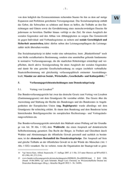 -4- 1. Einleitung 1 Das Grundge setz (GG) für die Bundesrepublik Deutschland greift die Tradition fast aller geschriebenen Verfassungen auf, zentrale Grundsätze zur Organisation und zum Selbstverständnis des von ihnen verfassten Staates in einem einzigen Verfassungsartikel 2 zusammenzufassen. Im Mittelpunkt des bundesrepublikanischen Staatsverständnisses steht der Wortlaut des Art. 20 Abs. 1 GG: „Die Bundesrepublik Deutschland ist ein demokratischer und sozialer Bundesstaat“. Diese Verfassungsnorm beinhaltet neben dem republikanischen Prinzip und der Bun- desstaatlichkeit das - Demokratieprinzip und das - Sozialstaatsprinzip als wesentliche und fundamentale Aussagen über die verfassungsrechtliche Identität der Bundesrepublik Deutschland. Grundsätzlich lassen sich diese Prinzipien in zwei Grup- 3 pen unterscheiden. Zum einen in die Staatsstrukturprinzipien und die Staatszielb e- 4 stimmungen , wobei das Demokratieprinzip ein Staatsstrukturprinzip darstellt, während das Sozialstaatsprinzip als Staatszielbestimmung zu betrachten ist. Vor allem Urteile des Bundesverfassungsgerichts aus der jüngsten Vergangenheit bieten Anlass, die Tätigkeit des Gerichts im Hinblick auf die Absicherung der genannten Ver- fassungsgrundsätze näher zu untersuchen. Ziel der folgenden Ausführungen ist es, die verschiedenen Entscheidungen zu beleuchten, mit denen Gesetze bzw. einzelne Normen im Hinblick auf einen Verstoß gegen das Demokratie- und/oder Sozialstaatsprinzips für verfassungswidrig erklärt wurden. Hierzu erfolgt zunächst eine kurze Erläuterung der Tätigkeit des Bundesverfassungsgerichts anhand konkreter Fallzahlen (Ziffer 2.). Anschließend werden die wesentlichen Strukturen des Demokratie- und Sozialstaats- prinzips dargestellt (Ziffer 3. und 4.), schließlich einige Entscheidungen des Bundesver- fassungsgerichts aus jüngster Zeit hierzu vorgestellt (Ziffer 5. und 6.). 1 Vom 23. Mai 1949 (BGBl. 1949, I, 1), zuletzt geändert durch das Gesetz zur Änderung des Grund- gesetzes vom 29. Juli 2009 (BGBl. I S. 2248). 2 Herzog, Roman, in: Maunz, Theodor/Dürig, Günter, Grundgesetz, Kommentar, 53. Auflage 2009, Art. 20 Rn. 1. 3 Unter Staatsstrukturprinzipien werden dabei staatsorganisatorische, formale Grundprinzipien der Verfassung verstanden, welche die Modalitäten der Staatstätigkeit beeinflussen (Sommermann, Karl-Peter, in: von Mangoldt/Klein/Starck, Band II, 5. Auflage 2005, Art. 20 Rn. 5). 4 Bei Staatszielbestimmungen handelt es sich um materielle Verfassungsprinzipien, welche den Staat auf die Verfolgung eines bestimmten, inhaltlich näher bestimmten Ziels verpflichten (Sommermann, Karl-Peter, in: von Mangoldt/Klein/Starck, Band II, 5. Auflage 2005, Art. 20 Rn. 5).