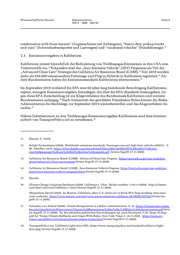 Wissenschaftliche Dienste Dokumentation Seite 6 WD 8 - 3000 - 085/20 combination with those tractors” (Zugmaschinen mit Anhängern), “heavy-duty pickup trucks 11 and vans” (Schwerlasttransporter und Lastwagen) und “vocational vehicles” (Nutzfahrzeuge). 2.3. Emissionsvorgaben in Kalifornien Kalifornien nimmt hinsichtlich der Reduzierung von Treibhausgas-Emissionen in den USA eine 12 Vorreiterrolle ein. Eckpunkte sind das „Zero-Emission Vehicle“ (ZEV) Programm als Teil der 13 „Advanced Clean Cars“ Strategie des California Air Resources Board (CARB). Seit 2010 wurden 14 mehr als 550.000 emissionsfreie Fahrzeuge und Plug-in Hybride in Kalifornien registriert. An- 15 dere Bundesstaaten haben die Emissionsstandards Kaliforniens übernommen. Im September 2019 widerrief die EPA eine 60 Jahre lang bestehende Berechtigung Kaliforniens, eigene, strengere Emissionsvorgaben festzulegen, die über die EPA-Standards hinausgehen. Ge- gen diese EPA-Entscheidung ist ein Klageverfahren des Bundesstaats Kalifornien und weiterer 16 Bundesstaaten anhängig. Nach Amtsantritt des gewählten Präsidenten Biden könnte die Biden- Administration die Rechtslage vor September 2019 wiederherstellen und das Klageverfahren be- 17 enden. Nähere Informationen zu den Treibhausgas-Emissionsvorgaben Kaliforniens sind dem Internet- 18 auftritt von TransportPolicy.net zu entnehmen. 11 Ebenda, S. 73478. 12 Delphi Technologies (2020). Worldwide emissions standards. Passenger cars and light duty vehicles 2020/21. S. 89. Abrufbar unter: https://www.delphi.com/sites/default/files/2020-04/DELPHI%20booklet%20emis- sion%20passenger%20cars%202020%20online%20complet.pdf (letzter Zugriff: 27.11.2020). 13 California Air Resources Board (CARB). Advanced Clean Cars Program. https://ww2.arb.ca.gov/our-work/pro- grams/advanced-clean-cars-program (letzter Zugriff: 27.11.2020). 14 California Air Resources Board (CARB). Zero-Emission Vehicle Program. https://ww2.arb.ca.gov/our-work/pro- grams/zero-emission-vehicle-program/about (letzter Zugriff: 27.11.2020). 15 Ebenda. 16 Climate Change Litigation Databases (2020). California v. Chao. Docket number: 1:19-cv-02826. http://climate- casechart.com/case/california-v-chao/ (letzter Zugriff: 27.11.2020). Shepardson, David (2019). In: Reuters. California, other U.S. states sue to block EPA from revoking state emis- sions authority. https://www.reuters.com/article/us-autos-emissions-california-idUSKBN1XP25Q (letzter Zu- griff: 27.11.2020). 17 Columbia Law School (2020). Climate Reregulation in a Bid en Administration. S. 42. https://climate.law.colum- bia.edu/sites/default/files/content/Climate%20Reregulation%20in%20a %20Biden%20Administration.pdf (letz- ter Zugriff: 27.11.2020). Zu den aktuellen politischen Entwicklungen vgl. auch Davenport, G.M. Drops Its Sup- port for Trump Climate Rollbacks and Aligns With Biden, New York Times v. 24.11.2020, https://www.ny- times.com/2020/11/23/climate/general-motors-trump.html (letzter Zugriff 27.11.2020). 18 TransportPolicy.net. California Light-duty GHG. https://www.transportpolicy.net/standard/california-light- duty-ghg/ (letzter Zugriff: 27.11.2020).