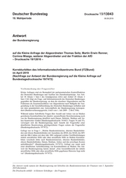 Deutscher Bundestag Drucksache 19/13043 19. Wahlperiode 06.09.2019 Antwort der Bundesregierung auf die Kleine Anfrage der Abgeordneten Thomas Seitz, Martin Erwin Renner, Corinna Miazga, weiterer Abgeordneter und der Fraktion der AfD – Drucksache 19/12616 – Korrekturbitten des Informationstechnikzentrums Bund (ITZBund) im April 2019 (Nachfrage zur Antwort der Bundesregierung auf die Kleine Anfrage auf Bundestagsdrucksache 19/7472) Vorbemerkung der Fragesteller Kleine Anfragen sind ein Bestandteil der parlamentarischen Kontrollfunktion des Deutschen Bundestages und Ausfluss des Demokratieprinzips. Aus Arti- kel 38 Absatz 1 Satz 2 des Grundgesetzes (GG) und Artikel 20 Absatz 2 Satz 2 GG folgt ein Frage- und Informationsrecht des Deutschen Bundestages gegenüber der Bundesregierung, an dem die einzelnen Abgeordneten und die Fraktionen als Zusammenschlüsse von Abgeordneten nach Maßgabe der Aus- gestaltung in der Geschäftsordnung des Deutschen Bundestages teilhaben und mit dem grundsätzlich eine Antwortpflicht der Bundesregierung korrespon- diert (Bundesverfassungsgericht, Urteil vom 1. Juli 2009 – 2 BvE 5/06). Während andere Schriftliche Fragen über Anzahl und Anlass von an Medien gerichteten Korrekturbitten bei objektiv unzutreffender Berichterstattung noch von der Bundesregierung detailliert nach Datum, Behörde, Medium und An- lass beantwortet wurden (Bundestagsdrucksache 19/4421, Fragen 54 und 55), verweigert sich die Bundesregierung nach Ansicht der Fragesteller einer detaillierten Beantwortung gleichgerichteter Fragen seitens der Fragesteller (Bundestagsdrucksache 19/7472). Gefragt war in Frage 1: „Welche Bundesministerien, obersten Bundesbehör- den und oberen Bundesbehörden mit Ausnahme des BND, des MAD, des BfV und des BKA haben seit dem Jahr 2001 aufgrund welcher Veröffentlichungen mittels anwaltlicher Hilfe oder ohne anwaltliche Hilfe an Medien Korrektur- bitten verschickt (bitte nach Bundesministerien, obersten Bundesbehörden, oberen Bundesbehörden, Datum, Medium, Anlass und den jeweiligen Kosten aufschlüsseln)?“ (Bundestagsdrucksache 19/7472). Gefragt war somit nach einer detaillierten Aufschlüsselung von Korrekturbitten an Medien. Die Ant- wort der Bundesregierung lautete darauf: „Eine Gesamtübersicht der mittels anwaltlicher Hilfe oder ohne anwaltliche Hilfe gegebenen Hinweise liegt nicht vor“ (Bundestagsdrucksache 19/7472). Die Antwort wurde namens der Bundesregierung mit Schreiben des Bundesministeriums der Finanzen vom 5. September 2019 übermittelt. Die Drucksache enthält – in kleinerer Schrifttype – den Fragetext.