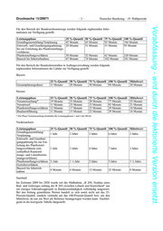 Drucksache 19/29971 –6– Deutscher Bundestag – 19. Wahlperiode Vorabfassung - wird durch die lektorierte Version ersetzt. Gerichtsverfahren Zeitbedarf für die gerichtliche Befassung in Monaten Jahr* Anzahl 25 % 50 % 75 % 100 % 2011 1 6 6 6 6 2012 - - - - - 2013 2 12 17 22 28 2014 4 16 27 39 48 2015 2 22 27 31 36 2016 3 9 12 13 14 2017 4 33 36 36 36 2018 14 24 24 29 42 2019 6 36 36 36 54 2020 5 11 22 24 48 noch laufend noch keine zahlenmäßige Angabe des Quantils möglich * Die angegebene Jahreszahl bezeichnet jeweils das Ende des Verfahrens. Im Bereich der Bundesfernstraßen werden folgende ergänzende Informationen zur Verfügung gestellt: Hessen: Gerichtsverfahren Zeitbedarf für die gerichtliche Befassung in Monaten Jahr* Anzahl 25 % 50 % 75 % 100 % 2009 4 16,75 17,5 18 18 2010 6 14 22 39,75 47 2011 1 17 17 17 17 2012 7 23 23 30,5 40 2013 9 7 13 15 19 2014 4 18 18 26 50 2015 4 19,25 26 31 37 2016 1 2 2 2 2 2017 1 8 8 8 8 2018 4 58,75 90 117 117 2019 2 53 68 68 68 2020 3 8 8 11,5 15 noch laufend noch keine zahlenmäßige Angabe des Quantils möglich * Die angegebene Jahreszahl bezeichnet jeweils das Ende des Verfahrens. Mecklenburg-Vorpommern: Gerichtsverfahren Zeitbedarf für die gerichtliche Befassung in Monaten Jahr* Anzahl 25 % 50 % 75 % 100 % 2009-2013 0 2014 1 1 2015 0 2016 0 2017 3 1 1 3 3 2018 1 2 2019 0 2020 1 4 noch laufend noch keine zahlenmäßige Angabe des Quantils möglich * Die angegebene Jahreszahl bezeichnet jeweils das Ende des Verfahrens.