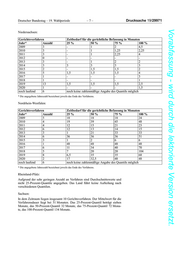 Deutscher Bundestag – 19. Wahlperiode –7– Drucksache 19/29971 Vorabfassung - wird durch die lektorierte Version ersetzt. Niedersachsen: Gerichtsverfahren Zeitbedarf für die gerichtliche Befassung in Monaten Jahr* Anzahl 25 % 50 % 75 % 100 % 2009 3 - 1 2 4,5 2010 3 - 1 1,25 2,25 2011 3 - 1 2,25 4 2012 0 - - - - 2013 3 - 1 2 2 2014 3 3 3 3 3 2015 2 - 1,5 1,5 2 2016 5 1,5 1,5 1,5 4 2017 1 - - - 3 2018 1 - - - 1 2019 13 1,5 1,5 1,5 2,5 2020 1 - - - 1,5 noch laufend 6 noch keine zahlenmäßige Angabe des Quantils möglich * Die angegebene Jahreszahl bezeichnet jeweils das Ende des Verfahrens. Nordrhein-Westfalen: Gerichtsverfahren Zeitbedarf für die gerichtliche Befassung in Monaten Jahr* Anzahl 25 % 50 % 75 % 100 % 2009 5 18 18 18 24 2010 4 19 39 45 48 2011 4 12 15 21 23 2012 6 12 13 14 15 2013 3 1 21 33 33 2014 6 36 36 36 51 2015 3 1 2 6 6 2016 1 48 48 48 48 2017 6 11 34 40 70 2018 5 7 20 20 104 2019 8 6,5 35 35 68 2020 2 17 32,5 48 48 noch laufend 6 noch keine zahlenmäßige Angabe des Quantils möglich * Die angegebene Jahreszahl bezeichnet jeweils das Ende des Verfahrens. Rheinland-Pfalz: Aufgrund der sehr geringen Anzahl an Verfahren sind Durchschnittswerte und nicht 25-Prozent-Quantile angegeben. Das Land führt keine Aufteilung nach verschiedenen Quantilen. Sachsen: In dem Zeitraum liegen insgesamt 10 Gerichtsverfahren. Der Mittelwert für die Verfahrensdauer liegt bei 51 Monaten. Das 25-Prozent-Quantil beträgt sieben Monate, das 50-Prozent-Quantil 32 Monate, das 75-Prozent-Quantil 72 Mona- te, das 100-Prozent-Quantil 134 Monate.