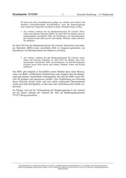 Drucksache 19/13161 –2– Deutscher Bundestag – 19. Wahlperiode Da nicht nach einer Gesamtübersicht gefragt war, sondern nach konkret und detailliert aufzuschlüsselnden Korrekturbitten, muss die Bundesregierung nach Ansicht der Fragesteller nochmals zu dieser Thematik befragt werden. 1. Aus welchen Anlässen hat das Bundesministerium für Umwelt, Natur- schutz und nukleare Sicherheit (BMU) im April 2019 bei Medien unter In- anspruchnahme anwaltlicher Hilfe um Korrekturen von Berichterstattun- gen ersuchen lassen (bitte jeweils nach Datum, Medium, Anlass und Kos- ten auflisten)? Im April 2019 hat das Bundesministerium für Umwelt, Naturschutz und nukle- are Sicherheit (BMU) keine anwaltliche Hilfe in Anspruch genommen, um Korrekturen von Berichterstattern bei Medien zu erwirken. 2. Aus welchen Anlässen hat das Bundesministerium für Umwelt, Natur- schutz und nukleare Sicherheit im April 2019 bei Medien ohne Inan- spruchnahme anwaltlicher Hilfe um Korrekturen von Berichterstattungen ersuchen lassen (bitte jeweils nach Datum, Medium, Anlass und Kosten auflisten)? Das BMU gibt lediglich in Einzelfällen einem Medium dann einen Hinweis, wenn vom BMU veröffentlichte Informationen oder Angaben über die Bundes- regierung objektiv unzutreffend wiedergegeben sind und das BMU einen Hin- weis für geeignet und angemessen erachtet. Eine Verpflichtung zur Erfassung dieser Hinweise besteht nicht, und eine solche umfassende Dokumentation wurde auch nicht durchgeführt, so dass dazu eine Aufstellung nicht erstellt wer- den kann. Im Übrigen wird auf die Vorbemerkung der Bundesregierung in der Antwort auf die Kleine Anfrage der Fraktion der AfD auf Bundestagsdrucksache 19/7472 Bezug genommen. Gesamtherstellung: H. Heenemann GmbH & Co. KG, Buch- und Offsetdruckerei, Bessemerstraße 83–91, 12103 Berlin, www.heenemann-druck.de Vertrieb: Bundesanzeiger Verlag GmbH, Postfach 10 05 34, 50445 Köln, Telefon (02 21) 97 66 83 40, Fax (02 21) 97 66 83 44, www.betrifft-gesetze.de ISSN 0722-8333