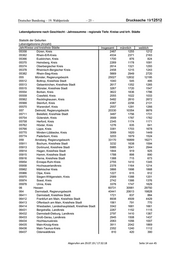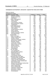 Drucksache 19/12512 – 26 – Deutscher Bundestag – 19. Wahlperiode Lebendgeborene nach Geschlecht - Jahressumme - regionale Tiefe: Kreise und krfr. Städte Statistik der Geburten Lebendgeborene (Anzahl) Jahr/Kreise und kreisfreie Städte Insgesamt männlich weiblich 06438 Offenbach, Landkreis 3556 1844 1712 06439 Rheingau-Taunus-Kreis 1563 815 748 06440 Wetteraukreis 2615 1308 1307 065 Gießen, Regierungsbezirk 9401 4801 4600 06531 Gießen, Landkreis 2631 1368 1263 06532 Lahn-Dill-Kreis 2297 1146 1151 06533 Limburg-Weilburg, Landkreis 1453 748 705 06534 Marburg-Biedenkopf, Landkreis 2209 1125 1084 06535 Vogelsbergkreis 811 414 397 066 Kassel, Regierungsbezirk 10889 5567 5322 06611 Kassel, Kreisfreie Stadt 2116 1064 1052 06631 Fulda, Landkreis 2134 1096 1038 06632 Hersfeld-Rotenburg, Landkreis 1130 577 553 06633 Kassel, Landkreis 1951 999 952 06634 Schwalm-Eder-Kreis 1419 736 683 06635 Waldeck-Frankenberg, Landkreis 1386 708 678 06636 Werra-Meißner-Kreis 753 387 366 07 Rheinland-Pfalz 37519 19374 18145 071 Koblenz, Stat. Region 13360 6823 6537 07111 Koblenz, Kreisfreie Stadt 1153 567 586 07131 Ahrweiler, Landkreis 1064 546 518 07132 Altenkirchen (Westerwald), Landkreis 1086 546 540 07133 Bad Kreuznach, Landkreis 1411 741 670 07134 Birkenfeld, Landkreis 696 348 348 07135 Cochem-Zell, Landkreis 458 230 228 07137 Mayen-Koblenz, Landkreis 1995 995 1000 07138 Neuwied, Landkreis 1660 873 787 07140 Rhein-Hunsrück-Kreis 901 448 453 07141 Rhein-Lahn-Kreis 1097 559 538 07143 Westerwaldkreis 1839 970 869 072 Trier, Stat. Region 4837 2531 2306 07211 Trier, Kreisfreie Stadt 1076 583 493 07231 Bernkastel-Wittlich, Landkreis 1025 550 475 07232 Eifelkreis Bitburg-Prüm 935 485 450 07233 Vulkaneifel, Landkreis 486 247 239 07235 Trier-Saarburg, Landkreis 1315 666 649 073 Rheinhessen-Pfalz, Stat. Region 19322 10020 9302 07311 Frankenthal (Pfalz), Kreisfreie Stadt 544 265 279 07312 Kaiserslautern, Kreisfreie Stadt 972 493 479 07313 Landau in der Pfalz, Kreisfreie Stadt 466 248 218 07314 Ludwigshafen am Rhein, Kreisfreie Stadt 1969 999 970 07315 Mainz, Kreisfreie Stadt 2177 1163 1014 07316 Neustadt an der Weinstraße, Kreisfreie Stadt 543 296 247 07317 Pirmasens, Kreisfreie Stadt 349 185 164 07318 Speyer, Kreisfreie Stadt 480 256 224 07319 Worms, Kreisfreie Stadt 909 446 463 07320 Zweibrücken, Kreisfreie Stadt 286 137 149 07331 Alzey-Worms, Landkreis 1177 602 575 07332 Bad Dürkheim, Landkreis 1112 569 543 07333 Donnersbergkreis 615 321 294 Abgerufen am 29.07.19 / 17:32:18 Seite 15 von 45