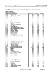 Deutscher Bundestag – 19. Wahlperiode – 39 – Drucksache 19/12512 Lebendgeborene nach Geschlecht - Jahressumme - regionale Tiefe: Kreise und krfr. Städte Statistik der Geburten Lebendgeborene (Anzahl) Jahr/Kreise und kreisfreie Städte Insgesamt männlich weiblich 08421 Ulm, Stadtkreis 1249 643 606 08425 Alb-Donau-Kreis, Landkreis 1802 898 904 08426 Biberach, Landkreis 1881 971 910 08435 Bodenseekreis, Landkreis 1850 944 906 08436 Ravensburg, Landkreis 2581 1256 1325 08437 Sigmaringen, Landkreis 1124 602 522 09 Bayern 118228 60511 57717 091 Oberbayern, Regierungsbezirk 46066 23599 22467 09161 Ingolstadt 1449 745 704 09162 München, Landeshauptstadt 17009 8653 8356 09163 Rosenheim 647 336 311 09171 Altötting, Landkreis 948 454 494 09172 Berchtesgadener Land, Landkreis 916 472 444 09173 Bad Tölz-Wolfratshausen, Landkreis 1132 557 575 09174 Dachau, Landkreis 1427 716 711 09175 Ebersberg, Landkreis 1262 628 634 09176 Eichstätt, Landkreis 1325 680 645 09177 Erding, Landkreis 1297 690 607 09178 Freising, Landkreis 1779 925 854 09179 Fürstenfeldbruck, Landkreis 1923 961 962 09180 Garmisch-Partenkirchen, Landkreis 711 374 337 09181 Landsberg am Lech, Landkreis 1000 527 473 09182 Miesbach, Landkreis 856 435 421 09183 Mühldorf a.Inn, Landkreis 961 507 454 09184 München, Landkreis 3339 1716 1623 09185 Neuburg-Schrobenhausen, Landkreis 892 437 455 09186 Pfaffenhofen a.d.Ilm, Landkreis 1173 629 544 09187 Rosenheim, Landkreis 2224 1164 1060 09188 Starnberg, Landkreis 1104 595 509 09189 Traunstein, Landkreis 1498 782 716 09190 Weilheim-Schongau, Landkreis 1194 616 578 092 Niederbayern, Regierungsbezirk 10314 5216 5098 09261 Landshut 644 353 291 09262 Passau 369 167 202 09263 Straubing 412 202 210 09271 Deggendorf, Landkreis 1023 502 521 09272 Freyung-Grafenau, Landkreis 615 314 301 09273 Kelheim, Landkreis 1029 543 486 09274 Landshut, Landkreis 1460 734 726 09275 Passau, Landkreis 1499 776 723 09276 Regen, Landkreis 637 328 309 09277 Rottal-Inn, Landkreis 1038 544 494 09278 Straubing-Bogen, Landkreis 817 377 440 09279 Dingolfing-Landau, Landkreis 771 376 395 093 Oberpfalz, Regierungsbezirk 9512 4903 4609 09361 Amberg 351 163 188 09362 Regensburg 1498 770 728 09363 Weiden i.d.OPf. 348 177 171 09371 Amberg-Sulzbach, Landkreis 808 405 403 09372 Cham, Landkreis 1048 560 488 Abgerufen am 29.07.19 / 17:32:18 Seite 28 von 45