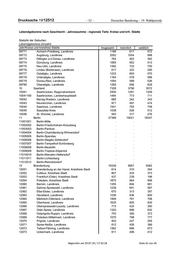 Drucksache 19/12512 – 52 – Deutscher Bundestag – 19. Wahlperiode Lebendgeborene nach Geschlecht - Jahressumme - regionale Tiefe: Kreise und krfr. Städte Statistik der Geburten Lebendgeborene (Anzahl) Jahr/Kreise und kreisfreie Städte Insgesamt männlich weiblich 09771 Aichach-Friedberg, Landkreis 1189 617 572 09772 Augsburg, Landkreis 2052 1054 998 09773 Dillingen a.d.Donau, Landkreis 764 402 362 09774 Günzburg, Landkreis 1065 552 513 09775 Neu-Ulm, Landkreis 1482 732 750 09776 Lindau (Bodensee), Landkreis 617 322 295 09777 Ostallgäu, Landkreis 1223 653 570 09778 Unterallgäu, Landkreis 1164 578 586 09779 Donau-Ries, Landkreis 1094 568 526 09780 Oberallgäu, Landkreis 1285 656 629 10 Saarland 7328 3756 3572 10041 Saarbrücken, Regionalverband 2500 1291 1209 10041100 Saarbrücken, Landeshauptstadt 1484 773 711 10042 Merzig-Wadern, Landkreis 685 342 343 10043 Neunkirchen, Landkreis 971 497 474 10044 Saarlouis, Landkreis 1541 783 758 10045 Saarpfalz-Kreis 1038 526 512 10046 St. Wendel, Landkreis 593 317 276 11 Berlin 37368 19021 18347 11001001 Berlin-Mitte . . . 11002002 Berlin-Friedrichshain-Kreuzberg . . . 11003003 Berlin-Pankow . . . 11004004 Berlin-Charlottenburg-Wilmersdorf . . . 11005005 Berlin-Spandau . . . 11006006 Berlin-Steglitz-Zehlendorf . . . 11007007 Berlin-Tempelhof-Schöneberg . . . 11008008 Berlin-Neukölln . . . 11009009 Berlin-Treptow-Köpenick . . . 11010010 Berlin-Marzahn-Hellersdorf . . . 11011011 Berlin-Lichtenberg . . . 11012012 Berlin-Reinickendorf . . . 12 Brandenburg 19339 9957 9382 12051 Brandenburg an der Havel, Kreisfreie Stadt 614 310 304 12052 Cottbus, Kreisfreie Stadt 807 434 373 12053 Frankfurt (Oder), Kreisfreie Stadt 437 239 198 12054 Potsdam, Kreisfreie Stadt 1870 964 906 12060 Barnim, Landkreis 1355 694 661 12061 Dahme-Spreewald, Landkreis 1238 651 587 12062 Elbe-Elster, Landkreis 670 313 357 12063 Havelland, Landkreis 1236 636 600 12064 Märkisch-Oderland, Landkreis 1469 761 708 12065 Oberhavel, Landkreis 1635 805 830 12066 Oberspreewald-Lausitz, Landkreis 773 423 350 12067 Oder-Spree, Landkreis 1320 688 632 12068 Ostprignitz-Ruppin, Landkreis 753 380 373 12069 Potsdam-Mittelmark, Landkreis 1575 798 777 12070 Prignitz, Landkreis 502 247 255 12071 Spree-Neiße, Landkreis 812 426 386 12072 Teltow-Fläming, Landkreis 1362 689 673 12073 Uckermark, Landkreis 911 499 412 Abgerufen am 29.07.19 / 17:32:18 Seite 41 von 45