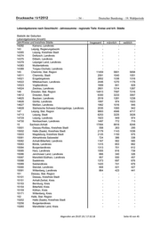 Drucksache 19/12512 – 54 – Deutscher Bundestag – 19. Wahlperiode Lebendgeborene nach Geschlecht - Jahressumme - regionale Tiefe: Kreise und krfr. Städte Statistik der Geburten Lebendgeborene (Anzahl) Jahr/Kreise und kreisfreie Städte Insgesamt männlich weiblich 14292 Kamenz, Landkreis - - - 143 Leipzig, Regierungsbezirk - - - 14365 Leipzig, Kreisfreie Stadt - - - 14374 Delitzsch, Landkreis - - - 14375 Döbeln, Landkreis - - - 14379 Leipziger Land, Landkreis - - - 14383 Muldentalkreis - - - 14389 Torgau-Oschatz, Landkreis - - - 145 Chemnitz, Stat. Region 11459 5801 5658 14511 Chemnitz, Stadt 2091 1040 1051 14521 Erzgebirgskreis 2652 1336 1316 14522 Mittelsachsen, Landkreis 2446 1270 1176 14523 Vogtlandkreis 1669 841 828 14524 Zwickau, Landkreis 2601 1314 1287 146 Dresden, Stat. Region 14813 7597 7216 14612 Dresden, Stadt 6300 3233 3067 14625 Bautzen, Landkreis 2519 1281 1238 14626 Görlitz, Landkreis 1997 974 1023 14627 Meißen, Landkreis 1962 1016 946 14628 Sächsische Schweiz-Osterzgebirge, Landkreis 2035 1093 942 147 Leipzig, Stat. Region 9663 4946 4717 14713 Leipzig, Stadt 6253 3225 3028 14729 Leipzig, Landkreis 1923 949 974 14730 Nordsachsen, Landkreis 1487 772 715 15 Sachsen-Anhalt 17064 8816 8248 15001 Dessau-Roßlau, Kreisfreie Stadt 558 263 295 15002 Halle (Saale), Kreisfreie Stadt 2179 1143 1036 15003 Magdeburg, Kreisfreie Stadt 2125 1150 975 15081 Altmarkkreis Salzwedel 724 386 338 15082 Anhalt-Bitterfeld, Landkreis 1167 582 585 15083 Börde, Landkreis 1315 653 662 15084 Burgenlandkreis 1313 701 612 15085 Harz, Landkreis 1555 816 739 15086 Jerichower Land, Landkreis 666 340 326 15087 Mansfeld-Südharz, Landkreis 957 500 457 15088 Saalekreis 1373 697 676 15089 Salzlandkreis 1420 741 679 15090 Stendal, Landkreis 848 421 427 15091 Wittenberg, Landkreis 864 423 441 151 Dessau, Stat. Region - - - 15101 Dessau, Kreisfreie Stadt - - - 15151 Anhalt-Zerbst, Kreis - - - 15153 Bernburg, Kreis - - - 15154 Bitterfeld, Kreis - - - 15159 Köthen, Kreis - - - 15171 Wittenberg, Kreis - - - 152 Halle, Stat. Region - - - 15202 Halle (Saale), Kreisfreie Stadt - - - 15256 Burgenlandkreis - - - 15260 Mansfelder Land, Kreis - - - Abgerufen am 29.07.19 / 17:32:18 Seite 43 von 45