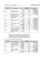Deutscher Bundestag – 19. Wahlperiode –5– Drucksache 19/17538 Unterposition Anzahl der Bezeichnung Monat Rechnungsbetrag (HS) Packstücke Juli 554 3.044.403 EUR 0 1.103.998 EUR andere Waffenteile, an- August 9305 99 0 158.565 GBP deres Waffenzubehör 762 2.706.454 EUR September 0 46.846 USD Patronen für Gewehre Juli 0 189.383 EUR mit glattem Lauf, Teile August 0 0 9306 21 davon; Geschosse für Luftgewehre und -pist- September 0 0 olen: Patronen 978 2.200.393 EUR Juli 6 71.856 USD Geschosse für Luftge- 9306 29 August 26 769.200 EUR wehre; Teile 1.834 1.033.347 EUR September 792 181.963 EUR Juli 314 1.340.130 EUR andere Patronen und Tei- 9306 30 August 1302 738.660 EUR le davon September 18 68.180 EUR Juli 2 1.113.661 EUR 9306 90 andere als zuvor genannt August 0 309.713 EUR September 64 3.263.649 EUR Säbel, Degen, Bajonette, Juli 0 0 EUR Lanzen und andere blan- August 0 56.614 EUR 9307 00 ke Waffen, Teile davon und Scheiden für diese September 0 0 Waffen 5. Welche sonstigen Güter, die unter Abschnitt XIX, Kapitel 93 der Zollta- rifnummern des Warenverzeichnisses des Außenhandels fallen, wurden nach Kenntnis der Bundesregierung für die Monate Oktober, November und Dezember 2019 jeweils ausgeführt (bitte einzelne HS-Codes und da- zugehörige Bezeichnung, Umfang, Wertangabe und Zielländer nennen)? Die Antwort ist der nachfolgenden Tabelle zu entnehmen. Unterposition Anzahl der Bezeichnung Monat Rechnungsbetrag (HS) Packstücke andere Jagd- und Sport- Oktober 2 35.360 EUR 9303 20 gewehre mit mindestens November 0 37.960 EUR einem glatten Lauf Dezember 0 0 Oktober 1.072 2.451.182 EUR andere Jagd- und Sport- 9303 30 November 1.054 1.704.325 EUR gewehre Dezember 12 3.089.509 EUR 400 26.708 GBP Oktober andere als Vorderlader 0 311.950 USD 9303 90 und Jagd- und Sportge- 272 2.697.109 EUR November wehre 232 1.052.188 USD Dezember 10 927.125 EUR