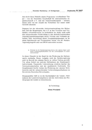 Deutscher Bundestag — 6. Wahlperiode Drucksache VI/2457 den durch diese Modelle alpine Programme verschiedener Trä- ger — wie der Deutschen Gesellschaft für internationalen Ju- gendaustausch e. V. und der Naturfreundejugend — initiiert, denen auch von der Anzahl der Teilnehmer her immer mehr Gewicht zukommt. Dagegen hat die stürmische Aufwärtsentwicklung des Skilau- fens und des Bergsteigens, die z. Z. in den Vereinen und Ver- bänden erfreulicherweise zu beobachten ist, leider noch nicht den entsprechenden Niederschlag in den deutsch-französischen Jugendgruppenbegegnungen dieser Vereine und Verbände ge- funden. Eine Ausweitung dieser Gruppenbegegnungen im al- pinen Sportbereich auf Vereinsebene würde von der Bundes- regierung begrüßt und vom DFJW unterstützt werden. 4. Wieweit ist die Bundesregierung bereit, den alpinen Sport auch durch Förderungsmaßnahmen für den Leistungssport zu unter unterstützen? In dieser Hinsicht ist der Bund für die Förderung des Spitzen- sports zuständig. Dieser Aufgabe wird die Bundesregierung auch im Bereich des alpinen Sports in vollem Umfang gerecht. Vor allem fördert sie zentrale Maßnahmen der Bundessport- fachverbände. Finanzielle Unterstützung erfahren hierbei die Nationalmannschaften und der qualifizierte Nachwuchs. Ein Hauptbeispiel hierfür bieten die Förderung der alpinen Wett- bewerbe und der entsprechenden Vorbereitungsmaßnahmen im Bereich des Deutschen Skiverbandes. Demgegenüber fällt es in die Zuständigkeit der Länder, Maß- nahmen der Landesleistungsklasse und die Aktivitäten der För- dergruppe der Länder zu bezuschussen. - In Vertretung Heinz Westphal