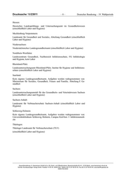 Drucksache 19/23911 –8– Deutscher Bundestag – 19. Wahlperiode Hessen: Hessisches Landesprüfungs- und Untersuchungsamt im Gesundheitswesen (einschließlich Labor und Hygiene) Mecklenburg-Vorpommern: Landesamt für Gesundheit und Soziales, Abteilung Gesundheit (einschließlich Labor und Hygiene) Niedersachsen: Niedersächsisches Landesgesundheitsamt (einschließlich Labor und Hygiene) Nordrhein-Westfalen: Landeszentrum Gesundheit, Fachbereich Infektionsschutz, FG Infektiologie und Hygiene, kein Labor Rheinland-Pfalz: Landesuntersuchungsamt Rheinland-Pfalz, Institut für Hygiene und Infektions- schutz (einschließlich Labor und Hygiene) Saarland: Kein eigenes Landesgesundheitsamt, Aufgaben werden wahrgenommen von: Ministerium für Soziales, Gesundheit, Frauen und Familie, Abteilung E Ge- sundheit Sachsen: Landesuntersuchungsanstalt für das Gesundheits- und Veterinärwesen Sachsen (einschließlich Labor und Hygiene) Sachsen-Anhalt: Landesamt für Verbraucherschutz Sachsen-Anhalt (einschließlich Labor und Hygiene) Schleswig-Holstein: Kein eigenes Landesgesundheitsamt, Aufgaben werden wahrgenommen von: Universitätsklinikum Schleswig Holstein, Campus Kiel/Inst. f. Infektionsmedi- zin Thüringen: Thüringer Landesamt für Verbraucherschutz (TLV) (einschließlich Labor und Hygiene) Gesamtherstellung: H. Heenemann GmbH & Co. KG, Buch- und Offsetdruckerei, Bessemerstraße 83–91, 12103 Berlin, www.heenemann-druck.de Vertrieb: Bundesanzeiger Verlag GmbH, Postfach 10 05 34, 50445 Köln, Telefon (02 21) 97 66 83 40, Fax (02 21) 97 66 83 44, www.betrifft-gesetze.de ISSN 0722-8333