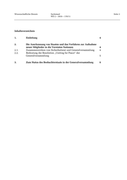 Wissenschaftliche Dienste Sachstand Seite 3 WD 2 – 3010 – 178/11 Inhaltsverzeichnis 1. Einleitung 4 2. Die Anerkennung von Staaten und das Verfahren zur Aufnahme neuer Mitglieder in die Vereinten Nationen 4 2.1. Zusammenwirken von Sicherheitsrat und Generalversammlung 4 2.2. Bedeutung der Resolution „Uniting for Peace“ der Generalversammlung 5 3. Zum Status des Beobachterstaats in der Generalversammlung 6