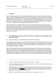 Wissenschaftliche Dienste Sachstand Seite 2 WD 2 – 3010 – 178/11 Zum Status Palästinas in den Vereinten Nationen Verfasser: Aktenzeichen: WD 2 – 3010 – 178/11 Abschluss der Arbeit: 26. September 2011 Fachbereich: WD 2: Auswärtiges, Völkerrecht, wirtschaftliche Zusammenarbeit und Entwicklung, Verteidigung, Menschenrechte und humanitäre Hilfe Telefon: + Ausarbeitungen und andere Informationsangebote der Wissenschaftlichen Dienste geben nicht die Auffassung des Deutschen Bundestages, eines seiner Organe oder der Bundestagsverwaltung wieder. Vielmehr liegen sie in der fachlichen Verantwortung der Verfasserinnen und Verfasser sowie der Fachbereichsleitung. Der Deutsche Bundestag behält sich die Rechte der Veröffentlichung und Verbreitung vor. Beides bedarf der Zustimmung der Leitung der Abteilung W, Platz der Republik 1, 11011 Berlin.