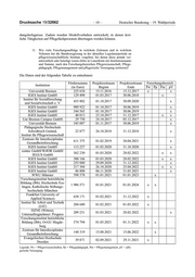 Deutscher Bundestag – 19. Wahlperiode –5– Drucksache 19/32662 Laut Hochschulkompass der Hochschulrektorenkonferenz gibt es aktuell sieben Promotionsstudiengänge an sechs Hochschulen im Bereich Pflegewissenschaft: Promotionsstudienangebote an Hochschulen: Hochschule Fakultät/Fachbereich Promotionsfach Private Universität Witten/ Fakultät für Gesundheit Pflegewissenschaft; Herdecke gGmbH (Department für Pflegewissen- Pflegewissenschaft/Psychologie (2 Angebote) schaft) Philosophisch-Theologische Pflegemanagement; Pflegewissenschaftliche Fakultät Hochschule Vallendar Pflegepädagogik Pädagogische Hochschule Fakultät I Pflegewissenschaft Schwäbisch Gmünd Martin-Luther-Universität Gesundheits- und Medizinische Fakultät Halle-Wittenberg Pflegewissenschaften Medizinische Fakultät Charité – Gesundheits- und Freie Universität Berlin Universitätsmedizin Berlin Pflegewissenschaften Medizinische Fakultät der Charité – Gesundheits- und Humboldt-Universität zu Berlin Universitätsmedizin Berlin Pflegewissenschaften Die Zahl der erfolgreich abgeschlossenen Promotionen im Studienfach Pflege- wissenschaft/-management ist im Zeitraum vom 2010 bis 2020 um mehr als das Vierfache angestiegen. Bestandenen Promotionen im Studienfach Pflege- wissenschaft/-management in den Studienjahren 2010 bis 2020 sind der nach- folgenden Tabelle zu entnehmen: Studienjahr 2010 2011 2012 2013 2014 2015 2016 2017 2018 2019 2020 Promotionen 4 11 21 13 25 18 18 18 25 20 21 Insgesamt wurden acht Personen im Fachgebiet Pflegewissenschaft/-manage- ment im Zeitraum vom 2010 bis 2019 habilitiert. Aufgrund der geringen Fall- zahlen ist keine Entwicklung ableitbar. Daten für das Jahr 2020 liegen der Bundesregierung nicht vor. 5. Wie bewertet die Bundesregierung die bestehenden Promotions- und Habilitationsmöglichkeiten in der Pflegewissenschaft in Deutschland im internationalen Vergleich? Zur Analyse und Einschätzung der hochschulischen Qualifikationen in den Gesundheitsfachberufen einschließlich der Pflegeberufe in Deutschland ist im Jahr 2019 die Arbeitsgruppe des Wissenschaftsrats „Hochschulische Qualifika- tionen für das Gesundheitssystem – Nachverfolgung“ eingerichtet worden. Im Fokus ihrer Arbeit steht die Entwicklung der Studienangebote sowie der Berufseinstieg akademisch ausgebildeter Kräfte, der Ausbau der Forschung, Karrierewege und die Nachwuchsförderung. Um den Entwicklungsstand der Pflege- Therapie- und Hebammenwissenschaften fundiert erheben, einschätzen und interpretieren zu können, soll in diesem Rahmen eine Studie durchgeführt werden. Die Beratung und Verabschiedung der Empfehlungen durch den Wis- senschaftsrat wird voraussichtlich im ersten Halbjahr 2022 erfolgen. Im Übri- gen wird auf die Antwort zu Frage 4 verwiesen.