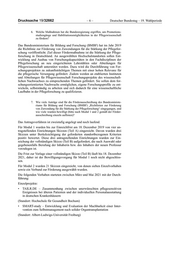 Deutscher Bundestag – 19. Wahlperiode –7– Drucksache 19/32662 • BSN4Hospital – Studie zur Arbeitszufriedenheit und Verbleibmotivation von akademisch ausgebildeten Pflegefachpersonen in deutschen Kranken- häusern und Identifikation von Maßnahmen der Rekrutierung und Mitarbei- terbindung auf Management- und Politikebene (Standort: TU Berlin) • Enrole Acute – Erweiterte Rollen für Pflegefachpersonen zur personen- zentrierten Versorgung von Menschen mit kognitiven Einschränkungen im Krankenhaus (Standort: Universität zu Köln) • ROAD – CaRegiving from A Distance: Häusliche Pflege in der Zukunft: flexibel und nah (Standort: Charité Berlin) • ASK a Midwife/Erwerb von Kompetenzen und Fertigkeiten von Hebam- men zur Unterstützung von interventionsarmen Geburten in Geburtshäusern (Standort: Evangelische Hochschule Berlin) • PROTECT – Vermeidung von freiheitsentziehenden Maßnahmen im Akut- krankenhaus (Standort: Martin-Luther-Universität Halle-Wittenberg). Verbund: • Expand Care-Erweiterte pflegerische Kompetenzen zur Verbesserung perso- nenzentrierter Pflege von Bewohnerinnen und Bewohnern in Langzeit- pflegeeinrichtungen (Standorte: Universität Lübeck und Universitätsklinikum Hamburg-Eppendorf). a) Wie hoch ist die hierfür im Bundeshaushalt jährlich bereitgestellte Fördersumme? Die vorgesehene Fördersumme für Modul 1 (Anreizsetzung Professuren) be- trägt insgesamt bis zu 6 Mio. Euro für einen Zeitraum von zweimal bis zu drei Jahren. Für die Förderung der Vorhaben in Modul 2 (Nachwuchsprojekte) sind von 2021 bis 2024 insgesamt 5,6 Mio. Euro vorgesehen: 2021 sind es 0,95 Mio. Euro, für 2022 sind es 1,76 Mio. Euro, für 2023 sind es 1,77 Mio. Euro und für 2024 sind es 1,11 Mio. Euro. b) Welche Angaben machen die antragstellenden Hochschulen zur Finan- zierung dieser Stellen nach dem Ende der Förderung? Aufgrund der Zielsetzung der Förderrichtlinie waren Aussagen zur Nachhaltig- keit nur für Modul 1 (Anreizsetzung Professuren) gefordert. Hierfür waren in der ersten Verfahrensstufe zunächst Projektskizzen vorzulegen, in welchen die Erfüllung der standortbezogenen Kriterien darzulegen waren. Diese standortbe- zogenen Kriterien umfassen gemäß der Förderrichtlinie auch die Gewährleis- tung der Nachhaltigkeit der Maßnahme in Form einer sichergestellten Weiterfi- nanzierung durch die Fakultäten nach Ablauf der Bundesförderung. Die antrag- stellenden Einrichtungen mussten demnach in der vorgelegten Skizze ihre Be- reitschaft erklären, zusätzlich zur Weiterführung der Professur mindestens die Hälfte der geförderten Personalstellen nach Auslaufen der Bundesförderung für mindestens sechs Jahre zu übernehmen. Diese standortbezogenen Kriterien haben alle drei positiv bewerteten antragstellenden Einrichtungen mit der Vor- lage von Teil A der Skizze erfüllt.