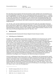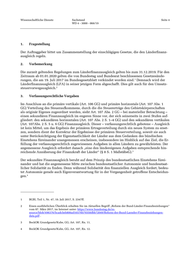 Wissenschaftliche Dienste Sachstand Seite 5 WD 4 - 3000 - 066/19 Der sekundäre Finanzausgleich darf die finanzstarken Länder deshalb nicht entscheidend in ih- rer Leistungsfähigkeit schwächen und ihre Leistungsbereitschaft nicht hemmen (§ 8 S. 3 Maßstä- beG). Ausgeschlossen ist eine Nivellierung der Finanzkraft der Bundesländer. Ebenso wenig darf es durch den sekundären Finanzausgleich zu einer Änderung der Finanzkraftreihenfolge unter den Bundesländern kommen. Ausnahmen gelten insoweit nur für Sonderbedarfs-Bundesergän- zungszuweisungen. Eine absolute oder relative Garantie der Finanzkraft eines Bundeslandes ist ausgeschlossen. 5 Art. 107 Abs. 2 GG und das konkretisierende Gesetzesrecht regeln den sekundären Finanzaus- gleich abschließend. Ergänzende Ausgleichsregelungen, auch in Gestalt freiwilliger Vereinbarun- gen zwischen den Ländern, sind unzulässig. Soweit sich derartige Vereinbarungen auf die finan- zielle Beteiligung einzelner Länder an den Ausgaben anderer Länder beziehen, scheitern sie dar- über hinaus am Konnexitätsgrundsatz nach Art. 104a Abs. 1 GG. 6 4. Bundesgesetze Als konkretisierendes Gesetzesrecht können folgende Gesetze benannt werden: 4.1. Maßstäbegesetze (MaßstäbeG): Gemäß § 1 Abs. 1 MaßstäbeG benennt dieses Gesetz „Maßstäbe für die Festsetzung der Anteile von Bund und Ländern an der Umsatzsteuer (vertikale Umsatzsteuerverteilung) nach Arti- kel 106 Abs. 3 Satz 4 und Abs. 4 Satz 1 des Grundgesetzes, für die Vergabe von Ergänzungsantei- len der Länder an der Umsatzsteuer (horizontale Umsatzsteuerverteilung) nach Artikel 107 Abs. 1 Satz 4 zweiter Halbsatz des Grundgesetzes, für die Voraussetzungen und die Höhe der Ausgleichsansprüche und Ausgleichsverbindlichkeiten (Länderfinanzausgleich) nach Arti- kel 107 Abs. 2 Satz 1 und 2 des Grundgesetzes sowie für die Gewährung von Bundesergänzungs- zuweisungen nach Artikel 107 Abs. 2 Satz 3 des Grundgesetzes.“ Nach Absatz 2 konkretisieren die Maßstäbe „die in Absatz 1 genannten Normen des Grundgesetzes. Die Anwendung der Maß- stäbe stellt sicher, dass Bund und Länder die verfassungsrechtlich vorgegebenen Ausgangstatbe- stände in gleicher Weise interpretieren und ihnen dieselben Indikatoren zugrunde legen. Sie ge- währleistet auch haushaltswirtschaftliche Planbarkeit und Voraussehbarkeit der finanzwirt- schaftlichen Grundlagen sowie Transparenz der Mittelverteilung im Gesamtstaat.“ Ab 01.01.2020 benennt dieses Gesetz nach § 1 Abs. 1 „Maßstäbe für die Festsetzung der Anteile von Bund und Ländern an der Umsatzsteuer (vertikale Umsatzsteuerverteilung) nach Artikel 106 Absatz 3 und Absatz 4 Satz 1 des Grundgesetzes, für die Festsetzung der Anteile der einzelnen Länder an dem den Ländern insgesamt zustehenden Anteil an der Umsatzsteuer und für den Fi- nanzkraftausgleich (horizontale Umsatzsteuerverteilung) nach Artikel 107 Absatz 1 Satz 4 und Absatz 2 Satz 1 bis 4 des Grundgesetzes sowie für die Gewährung von Zuweisungen nach Artikel 107 Absatz 2 Satz 5 und 6 des Grundgesetzes.“ 7 5 BeckOK Grundgesetz/Kube, GG; Art. 107, Rn. 13. 6 BeckOK Grundgesetz/Kube, GG; Art. 107, Rn. 14. 7 BGBl, Teil 1, Nr. 57, 17.08.2017, S. 3122.