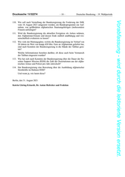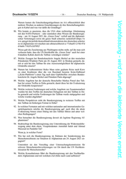 Deutscher Bundestag – 19. Wahlperiode – 15 – Drucksache 19/32274 Vorabfassung - wird durch die lektorierte Version ersetzt. nanziellen Mitteln auszustatten und sich im ersten Jahr neben belarussi- schen nun auch auf afghanische Studierende und Promovierende zu fo- kussieren? 74. Welche konkreten Vorbereitungen traf die Bundesregierung für das Ab- zugsszenario, a) nach dem Doha-Abkommen vom 29. Februar 2020? b) als der ehemalige US-Präsident Donald Trump im Oktober 2020 eine drastische Truppenreduzierung und einen schnellen Teilabzug bis Mitte Januar 2021 ankündigte? 75. Welche analytischen und operativen Konsequenzen wurden innerhalb der Bundesregierung Ende 2020 gezogen, als der BND eine Machtergreifung der Taliban in Afghanistan, einen Zusammenbruch des afghanischen Re- gierungsapparats und ein „Emirat 2.0“ voraussagte? 76. Welche konkreten Vorbereitungen traf die Bundesregierung für das Ab- zugsszenario, als US-Präsident Joe Biden Mitte April 2021 den endgülti- gen Abzug der US-Truppen in einem Zeitraum vom 1. Mai bis spätestens 11. September ankündigte? 77. Welche Argumente brachte auf der ressortübergreifenden Sitzung am 29. April 2021 zum Ortskräfteverfahren wer vor und woran scheiterte schließlich ein schnelles Handeln zur Gruppenaufnahme von Ortskräften (bitte die Argumente pro Ressort aufführen)? 78. Hat der BND nach dem Fall von Kunduz und Kandahar neue Lagebilder erstellt und die Bundesregierung darüber informiert, und wenn ja, wann? 79. In welchen Abständen hat der BND wen innerhalb der Bundesregierung mit Lagebildfortschreibungen seit dem Abzugsbeschluss vom 15. April 2021 zu Afghanistan informiert? 80. Bleibt die Bundesregierung bei der Aussage von Bundesaußenminister Heiko Maas vom 20. August 2021 gegenüber dem Spiegel, der BND ha- be eine falsche Lageeinschätzung getroffen? 81. Welche konkreten Konsequenzen will die Bundesregierung aus der Ar- beitsweise der Dienste als Lehren aus der Afghanistan-Tragödie ziehen? 82. Welche Verantwortung trifft das Bundeskanzleramt als oberste Dienstbe- hörde des BND und welche Konsequenzen sollen gezogen werden (per- sonell, in Bezug auf die Arbeitsweise des BND und in Bezug auf die Dienst- und Fachaufsicht)? 83. Wird die Bundesregierung personellen Konsequenzen mit Blick auf den BND ziehen? Wenn ja, welche und warum? 84. Welche konkreten Konsequenzen beabsichtigt die Bundesregierung zu ziehen mit Blick auf die Analysekapazitäten innerhalb des AA, das eige- ne handlungsleitende Schlüsse aus den Berichten der Nachrichtendienste zieht? 85. Welche konkreten Analysen bezüglich der operativen Vorbereitungen vor Ort vollzog das AA nach der Sitzung des Krisenstabs am 13. August und hinsichtlich der Kritik des deutschen Gesandten in Kabul, der auf „lange Versäumnisse“ des AA hingewiesen haben soll https://www.deutschlandf unk.de/afghanistan-deutsche-botschaft-warnte-offenbar-vergeblich.293 2.de.html?drn:news_id=1291525)?
