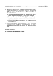 Deutscher Bundestag – 20. Wahlperiode –5– Drucksache 20/2551 14. Betrachtet die Bundesregierung vertikal integrierte Unternehmen im Be- reich der Mineralölwirtschaft (beispielsweise Betrieb von Tankstellen und Raffinerien innerhalb desselben Konzerns) als Wettbewerbshindernis in den Treibstoffmärkten? a) Wenn ja, welche Möglichkeiten stehen dem Bundeskartellamt zur Ver- fügung, um Wettbewerbshindernisse in diesem Bereich abzubauen? b) Wenn ja, sollen weitere kartellrechtliche Möglichkeiten für das Bun- deskartellamt geschaffen werden, um den Wettbewerb in diesem Be- reich zu intensivieren? c) Wenn nein, welche Wettbewerbshindernisse sieht die Bundesregierung in diesem Bereich? 15. Kann die Bundesregierung ausschließen, dass das in der EU beschlossene Zulassungsverbot für Neuwagen mit Verbrennungsmotor ab 2035 zu stei- genden Kraftstoffpreisen seitens der Mineralöl- und Tankstellenwirtschaft führt? Berlin, den 24. Juni 2022 Dr. Alice Weidel, Tino Chrupalla und Fraktion