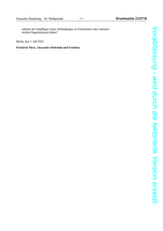 Deutscher Bundestag – 20. Wahlperiode –5– Drucksache 20/2719 Vorabfassung - wird durch die lektorierte Version ersetzt. nehmer der Empfänger keine Verbindungen zu Extremisten oder extremis- tischen Organisationen haben? Berlin, den 1. Juli 2022 Friedrich Merz, Alexander Dobrindt und Fraktion