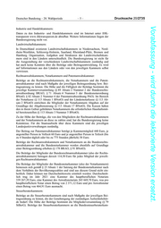 Deutscher Bundestag – 20. Wahlperiode –5– Drucksache 20/2735 Vorabfassung - wird durch die lektorierte Version ersetzt. Industrie und Handelskammern: Daten zu den Industrie- und Handelskammern sind im Internet unter IHK- transparent www.ihktransparent.de abrufbar. Weitere Informationen liegen der Bundesregierung nicht vor. Landwirtschaftskammern: In Deutschland existieren Landwirtschaftskammern in Niedersachsen, Nord- rhein-Westfalen, Schleswig-Holstein, Saarland, Rheinland-Pfalz, Bremen und Hamburg. Organisation, Aufgaben und Strukturen der Landwirtschaftskam- mern sind in den Ländern unterschiedlich. Die Bundesregierung ist nicht für die Ausgestaltung der verschiedenen Landwirtschaftskammern zuständig und hat auch keine Kenntnis über die Beiträge oder Beitragsentwicklung. Es wird auf Informationen aus den Ländern oder von den jeweiligen Kammern selbst verwiesen. Rechtsanwaltskammern, Notarkammern und Patentanwaltskammer: Beiträge an die Rechtsanwaltskammern, die Notarkammern und die Patent- anwaltskammer sind nach Maßgabe der jeweiligen Beitragsordnung bzw. Bei- tragssatzung zu leisten. Die Höhe und die Fälligkeit der Beiträge bestimmt die jeweilige Kammerversammlung (§ 89 Absatz 2 Nummer 2 der Bundesrechts- anwaltsordnung BRAO, § 71 Absatz 4 Nummer 3 der Bundesnotarordnung BNotO, § 82 Absatz 2 Nummer 4 der Patentanwaltsordnung PAO). Im Bereich der Notarkasse (§ 113 Absatz 1 BNotO) und der Ländernotarkasse (§ 113 Ab- satz 2 BNotO) entrichten die Mitglieder der Notarkammern Abgaben auf der Grundlage der Abgabensatzung (§ 113 Absatz 17 BNotO). Die Kassen haben den in ihrem Gebiet gebildeten Notarkammern die erforderlichen Haushaltsmit- tel bereitzustellen (§ 113 Absatz 3 Nummer 5 BNotO). Zu der Höhe der Beiträge, die von den Mitgliedern der Rechtsanwaltskammern und der Notarkammern an diese zu zahlen sind, hat die Bundesregierung keine Kenntnisse. Für die Staatsaufsicht über diese Kammern sind die jeweiligen Landesjustizverwaltungen zuständig. Der Beitrag zur Patentanwaltskammer beträgt je Kammermitglied 440 Euro, je angestellter Person in Vollzeit 60 Euro und je angestellter Person in Teilzeit (bis zu 4 Stunden täglich oder bis zu 775 Stunden jährlich) 30 Euro. Beiträge der Rechtsanwaltskammern und Notarkammern an die Bundesrechts- anwaltskammer und die Bundenotarkammer werden ebenfalls auf Grundlage einer Beitragsordnung erhoben (§ 178 BRAO, § 91 BNotO). Die Beiträge der Mitglieder der Bundesrechtsanwaltskammer (also der Rechts- anwaltskammern) betragen derzeit 114,50 Euro für jedes Mitglied der jeweili- gen Rechtsanwaltskammer. Die Beiträge der Mitglieder der Bundesnotarkammer (also der Notarkammern) bemessen sich gemäß § 23 Absatz 1 der Satzung der Bundesnotarkammer nach dem Verhältnis der Bevölkerungszahlen und sind aus diesem Grund nicht ein- heitlich. Daher können nur Durchschnittswerte ermittelt werden: Durchschnitt- lich trug im Jahr 2021 eine Kammer des hauptberuflichen Notariats 339 267,39 Euro, eine Kammer des Anwaltsnotariats 265 669,70 Euro, was pro hauptberuflichem Notar einen Betrag von 2 371,12 Euro und pro Anwaltsnotar einen Betrag von 464,91 Euro ausmacht. Steuerberaterkammern: Beiträge an die Steuerberaterkammern sind nach Maßgabe der jeweiligen Bei- tragsordnung zu leisten, die der Genehmigung der zuständigen Aufsichtsbehör- de bedarf. Die Höhe der Beiträge bestimmt die Mitgliederversammlung (§ 79 StBerG). Beiträge der Steuerberaterkammern an die Bundessteuerberaterkam-