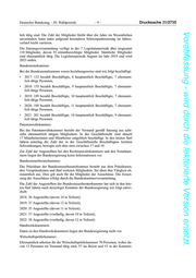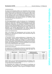 Drucksache 20/2735 –8– Deutscher Bundestag – 20. Wahlperiode Vorabfassung - wird durch die lektorierte Version ersetzt. Architektenkammern: Die Bundesarchitektenkammer (BAK) ist als eingetragener Verein ein Zusam- menschluss der 16 Länderarchitektenkammern. Nach § 3 der Satzung der BAK steht die Mitgliedschaft in der BAK allen Architektenkammern offen. Länder- kammern, denen auch andere Berufsgruppen als Architekten angehören, kön- nen nur Mitglieder werden, wenn satzungsgemäß sichergestellt ist, dass sie in der BAK ausschließlich die Interessen der genannten Berufsgruppen vertreten. Zur Beschäftigtenanzahl in den einzelnen Kammern auf Landesebene liegen der Bundesregierung keine Informationen vor. Ingenieurkammern: Die Bundesingenieurkammer vertritt die Interessen der 16 Landesingenieur- kammern auf Bundesebene. Mitglieder (Mitgliedskammern) der Bundesinge- nieurkammer können nach § 3 der Satzung der Bundesingenieurkammer Inge- nieurkammern, Baukammern sowie gemeinsame Architekten- und Ingenieur- kammern für deren Ingenieurmitglieder werden, soweit sie aufgrund eines Lan- desgesetzes als Körperschaft des öffentlichen Rechts errichtet wurden. Die Mit- gliedschaft in den einzelnen Ingenieurkammern der Länder ist bislang nicht einheitlich geregelt. Zur Beschäftigtenanzahl in den einzelnen Kammern auf Landesebene liegen der Bundesregierung keine Informationen vor. Industrie und Handelskammern: Daten zu den Industrie und Handelskammern sind im Internet unter IHK- transparent www.ihktransparent.de abrufbar. Weitere Informationen liegen der Bundesregierung nicht vor. Landwirtschaftskammern: In Deutschland existieren Landwirtschaftskammern in Niedersachsen, Nord- rhein-Westfalen, Schleswig-Holstein, Saarland, Rheinland-Pfalz, Bremen und Hamburg. Organisation, Aufgaben und Strukturen der Landwirtschaftskam- mern sind in den Ländern unterschiedlich. Die BReg ist nicht für die Ausgestal- tung der verschiedenen Landwirtschaftskammern zuständig und hat auch keine Kenntnis über Beschäftigtenzahlen. Es wird auf Informationen aus den Ländern oder von den jeweiligen Kammern selbst verwiesen. Rechtsanwaltskammern, Notarkammern und Patentanwaltskammer: Bundesrechtsanwaltskammer: Die Anzahl der bei der Bundesrechtsanwaltskammer hauptamtlich beschäftig- ten Mitarbeiterinnen und Mitarbeiter hat sich in den letzten fünf Jahren wie folgt entwickelt (hochgerechnet auf Vollzeitbeschäftigte): BRAK Berlin BRAK Brüssel Schlichtungsstelle Gesamt der Rechtsanwaltschaft 2018 37,5 8 7,5 53 2019 39,5 8 8 55,5 2020 39,5 6 8 53,5 2021 40,5 7 7,5 55 2022 40,5 6 7,5 54 Darüber hinaus ist bei der Bundesrechtsanwaltskammer das Präsidium, beste- hend aus dem Präsidenten, einer Vizepräsidentin und drei Vizepräsidenten so- wie dem Schatzmeister, ehrenamtlich tätig. Zur Wahrnehmung ihrer Aufgaben und insbesondere der Ausarbeitung von Stellungnahmen und Positionspapieren hat die Bundesrechtsanwaltskammer 33 Fachausschüsse eingerichtet, in denen insgesamt 248 Mitglieder ehrenamt-