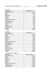 Deutscher Bundestag – 20. Wahlperiode – 13 – Drucksache 20/2507 u) Tunesien Bundesland Anzahl Personen Baden-Württemberg 6.091 Bayern 7.075 Berlin 3.141 Brandenburg 337 Bremen 449 Hamburg 1.437 Hessen 3.164 Mecklenburg-Vorpommern 380 Niedersachsen 4.201 Nordrhein-Westfalen 10.133 Rheinland-Pfalz 1.870 Saarland 392 Sachsen 1.752 Sachsen-Anhalt 391 Schleswig-Holstein 819 Thüringen 461 Gesamt 42.093 v) Indien Bundesland Anzahl Personen Baden-Württemberg 27.217 Bayern 35.750 Berlin 17.324 Brandenburg 1.857 Bremen 1.678 Hamburg 6.106 Hessen 20.269 Mecklenburg-Vorpommern 1.409 Niedersachsen 8.471 Nordrhein-Westfalen 30.564 Rheinland-Pfalz 5.296 Saarland 1.275 Sachsen 6.281 Sachsen-Anhalt 3.854 Schleswig-Holstein 2.198 Thüringen 2.346 Gesamt 171.895 w) Westbalkanstaaten (insgesamt) Bundesland Anzahl Personen* Baden-Württemberg 207.247 Bayern 214.019 Berlin 43.982 Brandenburg 6.597 Bremen 12.339 Hamburg 25.787 Hessen 90.790 Mecklenburg-Vorpommern 2.463 Niedersachsen 67.920 Nordrhein-Westfalen 249.733 Rheinland-Pfalz 40.560