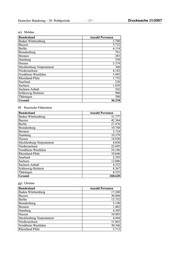 Drucksache 20/2507 – 16 – Deutscher Bundestag – 20. Wahlperiode Bundesland Anzahl Personen Saarland 359 Sachsen 1.481 Sachsen-Anhalt 752 Schleswig-Holstein 3.206 Thüringen 1.090 Gesamt 132.436 cc) Serbien Bundesland Anzahl Personen Baden-Württemberg 43.670 Bayern 33.780 Berlin 14.202 Brandenburg 1.593 Bremen 3.509 Hamburg 7.406 Hessen 30.957 Mecklenburg-Vorpommern 644 Niedersachsen 19.967 Nordrhein-Westfalen 66.666 Rheinland-Pfalz 7.536 Saarland 1.214 Sachsen 2.148 Sachsen-Anhalt 1.392 Schleswig-Holstein 3.239 Thüringen 1.705 Gesamt 239.628 dd) Osteuropa (insgesamt im statistischen Sinne: Bulgarien, Moldau (Repu- blik), Polen, Rumänien, Slowakische Republik, Russische Föderation, Tschechoslowakei (ehemals), Tschechische Republik, Ungarn, Ukraine, Belarus) Bundesland Anzahl Personen Baden-Württemberg 430.408 Bayern 593.177 Berlin 188.371 Brandenburg 58.565 Bremen 30.170 Hamburg 60.537 Hessen 268.690 Mecklenburg-Vorpommern 34.792 Niedersachsen 261.295 Nordrhein-Westfalen 602.815 Rheinland-Pfalz 150.788 Saarland 28.003 Sachsen 84.015 Sachsen-Anhalt 39.863 Schleswig-Holstein 75.901 Thüringen 45.753 Gesamt 2.953.143