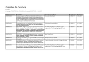 Projektliste EU-Forschung Berichtsfilter: (Projektbeginn (PROJEKTBEGINN) <= 30.06.2022) Und (Projektende (PROJEKTENDE) >= 01.01.2017) Förderkennzeichen Projekttitel Zuwendungsempfänger Projektbeginn Projektende 2818ERA06B Verbesserung von ineffizienten industriellen Verfahren (im Universität Hohenheim 01.09.2018 31.08.2021 Hinblick auf Durchlaufzeiten, Wasser- und Energieverbrauch) zur Kohlenhydratextraktion aus Meeresalgen durch erforschen neuer, umweltfreundlicher und effizienter Extraktionsmethoden und Nutzung der verbleibenden Biomasse. 2818ERA09B Prozessoptimierung und intelligente Reststoffnutzung durch Technische Universität Berlin 01.09.2018 31.12.2021 moderate elektrische Felder (MEF) für mehr Nachhaltigkeit in der Lebensmittelverarbeitung 2818ERA12B DISCOVERY - Aufschluss gängiger pflanzlicher Presskuchen Fraunhofer-Gesellschaft zur Förderung der 01.10.2018 30.06.2021 mittels neuartiger Techniken, um neue Produkte zu erzeugen angewandten Forschung eingetragener Verein und die Ausbeute zu erhöhen - Teilvorhaben: Untersuchung des Aufschlusses von pflanzlichen Presskuchen mittels Ultraschall und Hefen, der Konzentration der flüssigen proteinreichen Ströme 2818ERA13B DISCOVERY - Aufschluss gängiger pflanzlicher Presskuchen Berief Food GmbH 01.10.2018 30.06.2021 mittels neuartiger Techniken, um neue Produkte zu erzeugen und die Ausbeute zu erhöhen 2818ERA14B Nachhaltige Verarbeitung von Agrarreststoffen zu hochwertigen ASA Spezialenzyme GmbH 01.10.2018 31.12.2021 Wirkstoffen 2820ERA18E Innovative Ansätze mit Pflanzenprotein-Ballaststoff-Produkten Friedrich-Alexander-Universität Erlangen-Nürnberg 01.04.2021 31.03.2024 und körperlicher Aktivität zur Steigerung des Appetits und Vorbeugung von Mangelernährung bei Senioren (APPETITE) 2820ERA19E Innovative Ansätze mit Pflanzenprotein-Ballaststoff-Produkten Fraunhofer-Gesellschaft zur Förderung der 01.04.2021 31.03.2024 und körperlicher Aktivität zur Steigerung des Appetits und angewandten Forschung eingetragener Verein Vorbeugung von Mangelernährung bei Senioren (APPETITE)