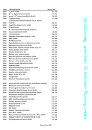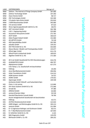 LAND UNTERNEHMEN Betrag in € NRW Zolitron - The Internet of Things Company GmbH 187.000 NRW Zolitron Technology GmbH 147.343 NRW Zwez-Chemie GmbH 98.717 NRW ZWi Technologies GmbH 325.500 Vorabfassung - wird durch die lektorierte Fassung ersetzt NRW 3 D-plastic Hans Kintra GmbH 232.810 NRW 3 WIN Maschinenbau GmbH 343.060 NRW 3-D.services GmbH 87.523 NRW 4Inno Ingenieurgesellschaft mbH & Co. KG 48.072 NRW 4JET microtech GmbH 263.788 HES A & S - Engineering GmbH 323.000 HES Acousticon Hörsysteme GmbH 271.765 HES ACST GmbH 166.614 HES Adam Ruppel Asbach GmbH 152.000 HES AD-ARTISTS GmbH 76.528 HES ADD Spezialtiefbau GmbH 202.500 HES advades GmbH 139.252 HES AGT-PSG GmbH & Co. KG 333.859 HES Alesco Muster- Modell und Prototypenbau GmbH 133.677 HES Alfred Jäger GmbH 413.176 HES Alfred Pracht Lichttechnik GmbH 140.623 HES Algoliner GmbH & Co. KG 171.364 HES All 4 net GmbH Gesellschaft für EDV-Dienstleistungen 416.276 HES ALMAWATECH GmbH 404.707 HES AlphaScience GmbH 417.273 A.M. Ramp u. Co. Gesellschaft mit beschränkter HES Haftung 20.294 HES AnJo Oberflächentechnik GmbH 204.056 HES Anker Foundations GmbH 214.313 HES AOM-Systems GmbH 16.521 HES AONIC GmbH 179.431 HES ApproLogic GmbH 149.548 Arichemie GmbH Füllstoff- und Farbenfabrik Dipl.- HES Chem. A. de Lannoy 113.846 HES Ark Vision Systems GmbH & Co. KG 171.040 HES Arnold AG 97.380 HES ARNOLD GmbH 64.000 HES aroma:id Karsten Küber 50.318 HES Asendorf Bauchemie Consult GmbH 78.769 Aurion Anlagentechnik Gesellschaft mit beschränkter HES Haftung 43.571 HES AViTEQ Vibrationstechnik GmbH 122.633 HES AWB Anlagen- und Werkzeugbau GmbH & Co. KG 195.213 HES axxessio GmbH 151.994 HES B + G Ingenieure Bollinger und Grohmann GmbH 83.571 HES B + T Oberflächentechnik GmbH 167.854 HES B. Schlichter GmbH & Co. KG 2.225 HES BAG Diagnostics GmbH 129.470 HES Bärhausen GmbH u. Co. KG 209.252 Seite 55 von 197