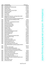 LAND UNTERNEHMEN Betrag in € NRW SmartMunk GmbH 136.554 NRW SM-Klebetechnik Vertriebs GmbH 115.665 NRW Solidbox GmbH 233.996 NRW solid-chem GmbH 115.521 Vorabfassung - wird durch die lektorierte Fassung ersetzt NRW Solids Development Consult GmbH 171.000 NRW SonarSource GmbH 76.088 NRW SONDEV GmbH 125.988 NRW son-x GmbH 823.312 NRW S-PACT GmbH 95.578 NRW Speckenheuer Maschinen- und Apparatebau-GmbH 187.681 NRW SPERING micro-systems gmbh 323.000 Spezialunternehmen für die Betoninstandsetzung und NRW Altbausanierungs GQ Quadflieg Bau GmbH 18.527 NRW Spilker GmbH 137.500 NRW spontan Trenn- und Entgrattechnik GmbH 105.194 NRW Spreckelmeyer GmbH 343.563 NRW SPS TechnoScreen GmbH 206.717 NRW SRD Maschinenbau GmbH 192.457 NRW SSR Engineering GmbH 46.303 NRW Stabalux GmbH 8.338 NRW Stahlteam GmbH 111.328 NRW Stamm CAD/CAM e.K. 119.566 NRW Stanecker Betonfertigteilwerk GmbH 12.344 NRW Stange Elektronik GmbH 180.000 NRW Stannol GmbH&Co.KG 140.482 NRW Stapel GmbH 396.273 NRW Status Pro Maschinenmesstechnik GmbH 316.980 NRW Stauf Klebstoffwerk GmbH 100.979 NRW Steinbach AG 141.648 NRW Steinbach-Errani GmbH 217.916 NRW Steinfurth Mess-Systeme GmbH 299.461 NRW Steinkamp GmbH & Co. KG 151.235 NRW Steintex Walter vom Stein KG 69.502 NRW Stellar Data Broadcast Services GmbH 84.965 stepp Fabrikautomation und Steuerungsbau GmbH & NRW Co. KG 140.218 NRW STG Smart Textiles GmbH 85.232 NRW STO Strahl-Technik-Oberberg GmbH 61.524 Stoma Gesellschaft mit beschränkter Haftung NRW Maschinen und Geräte für die graphische Industrie. 81.973 NRW Stottrop-Textil GmbH & Co. KG 84.003 NRW Straka 3-D Lasertechnik GmbH 225.000 NRW Stratec Strahl- und Fasertechnik GmbH 185.816 NRW Struck Turbotechnik GmbH 121.186 NRW Structural Engineering GmbH & Co. KG 269.939 NRW Stükerjürgen Aerospace Composites GmbH & Co.KG 114.000 NRW Sturm GmbH 388.504 NRW Stüwe GmbH & Co. KG 152.000 NRW STV Electronic GmbH 568.023 Seite 50 von 197